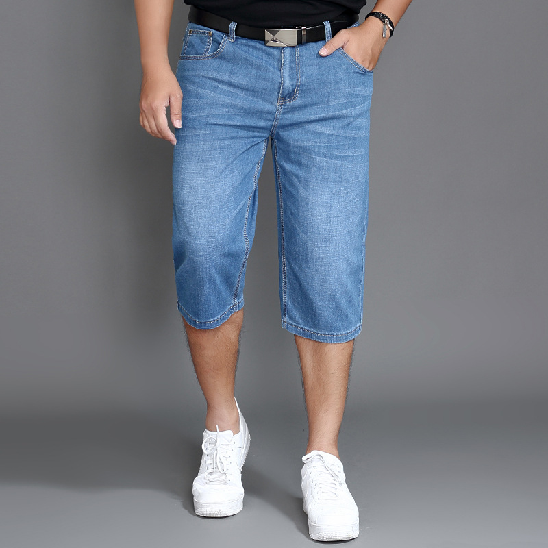 플러스 사이즈 데님 반바지 얇은 남자의 지방 플러스 사이즈 데님 반바지 여름 지방 느슨한 하이 웨이스트 탄성 청바지스토어 가기