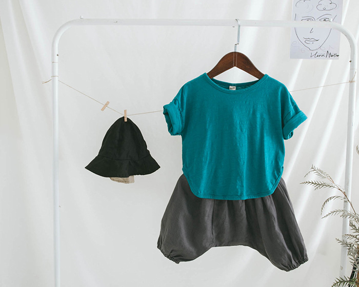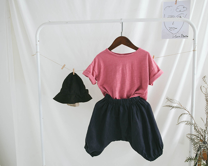여름 아동 티셔츠 단색 여아 하의 셔츠 반팔 한국식 라운드 넥 루즈 코튼 남아 상의 카테고리 A