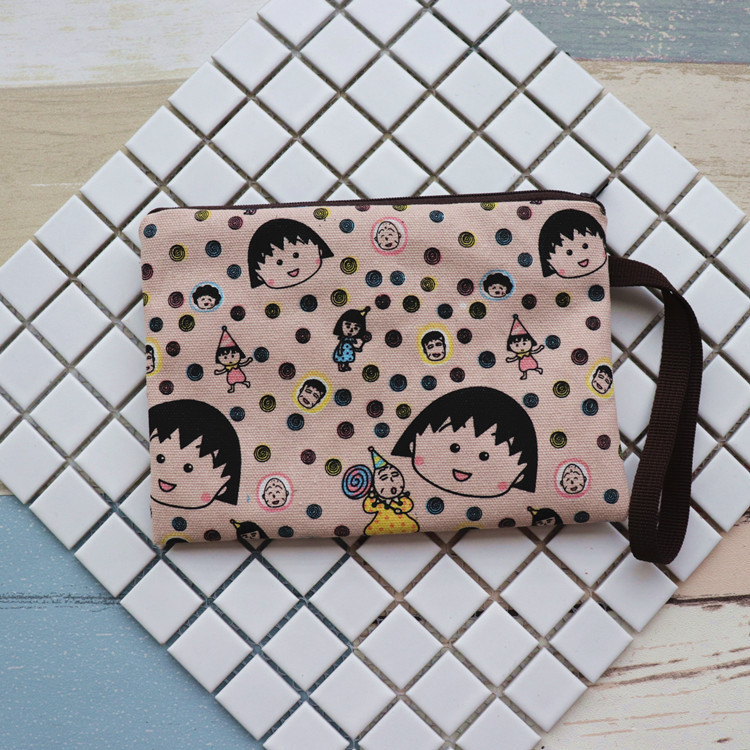 캔버스 만화 체리 마루코 휴대 전화 키 변경 화장품 가방 보관 졸라매는 끈 포켓스토어 가기