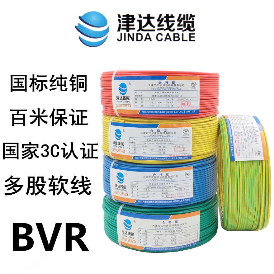 Jinda 케이블 BVR1.5 2.5 4 6 평방 GB 순수 구리 난연 철사 가정 장식 단일 코어 멀티 스트랜드 유연한 와이어