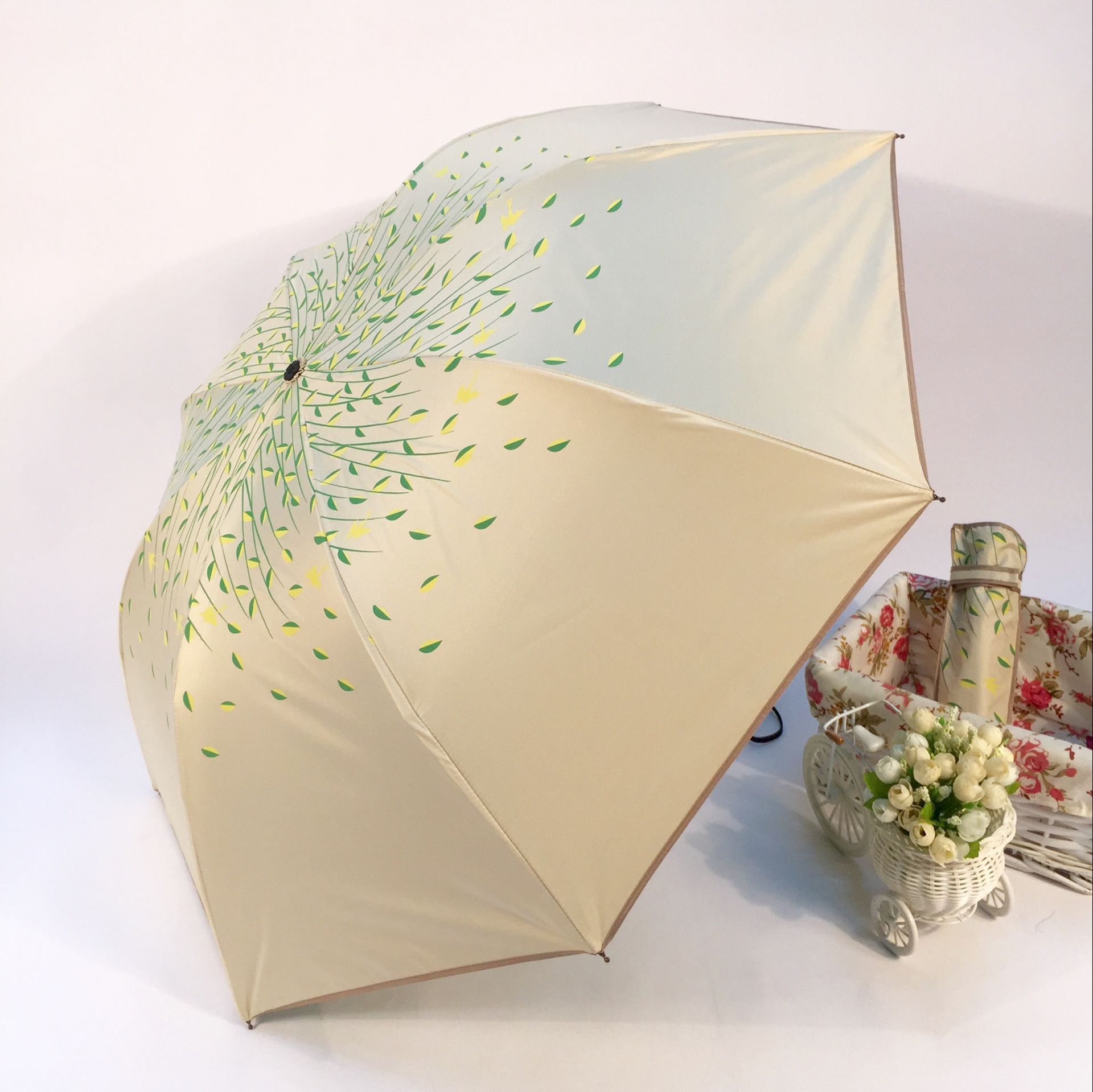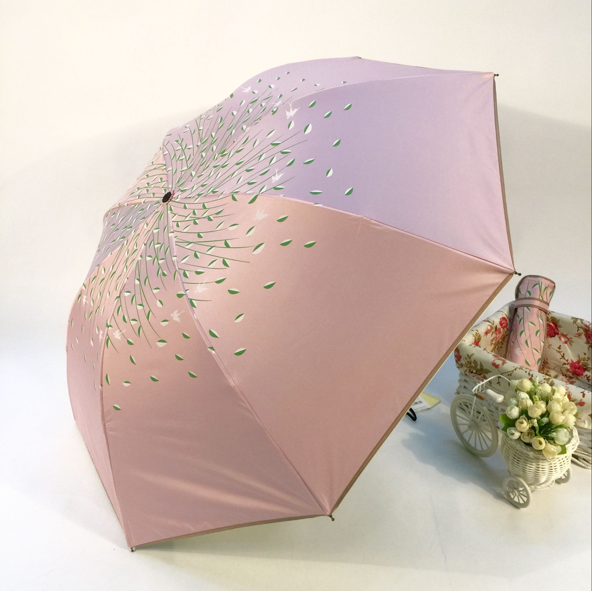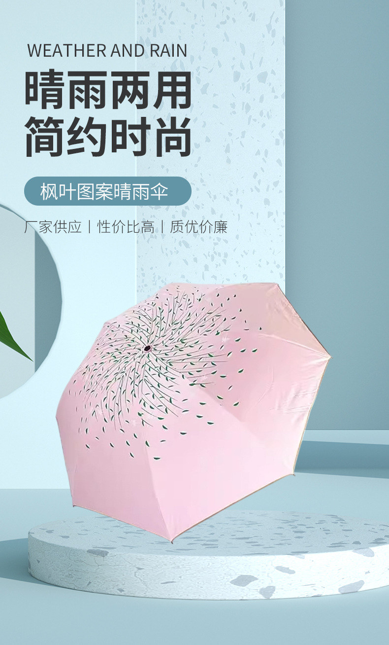 태양 우산 더블 신선한 내부 단풍 잎 패턴 써니 우산 강화 UV 보호 양산 우산 제조 업체 공급