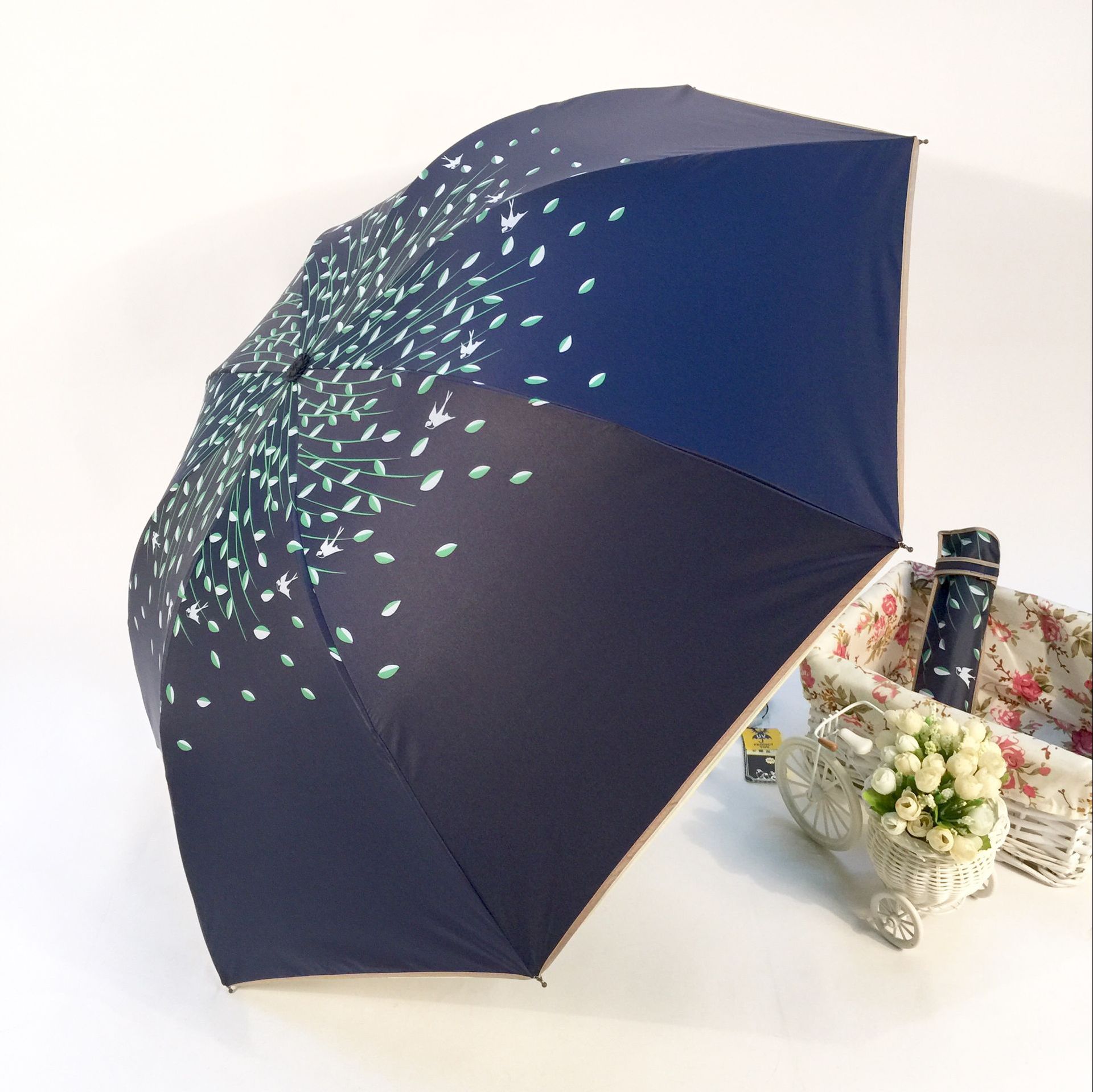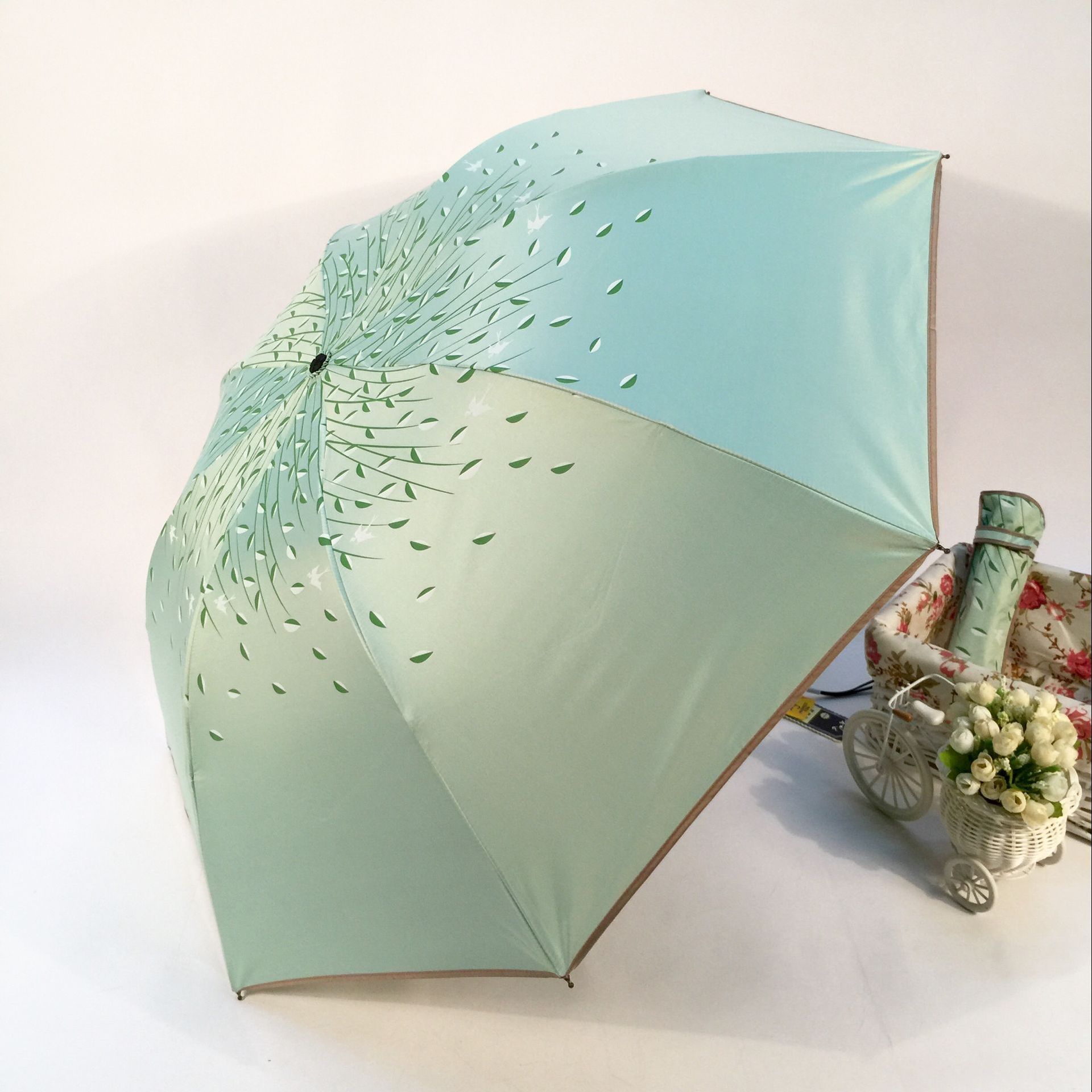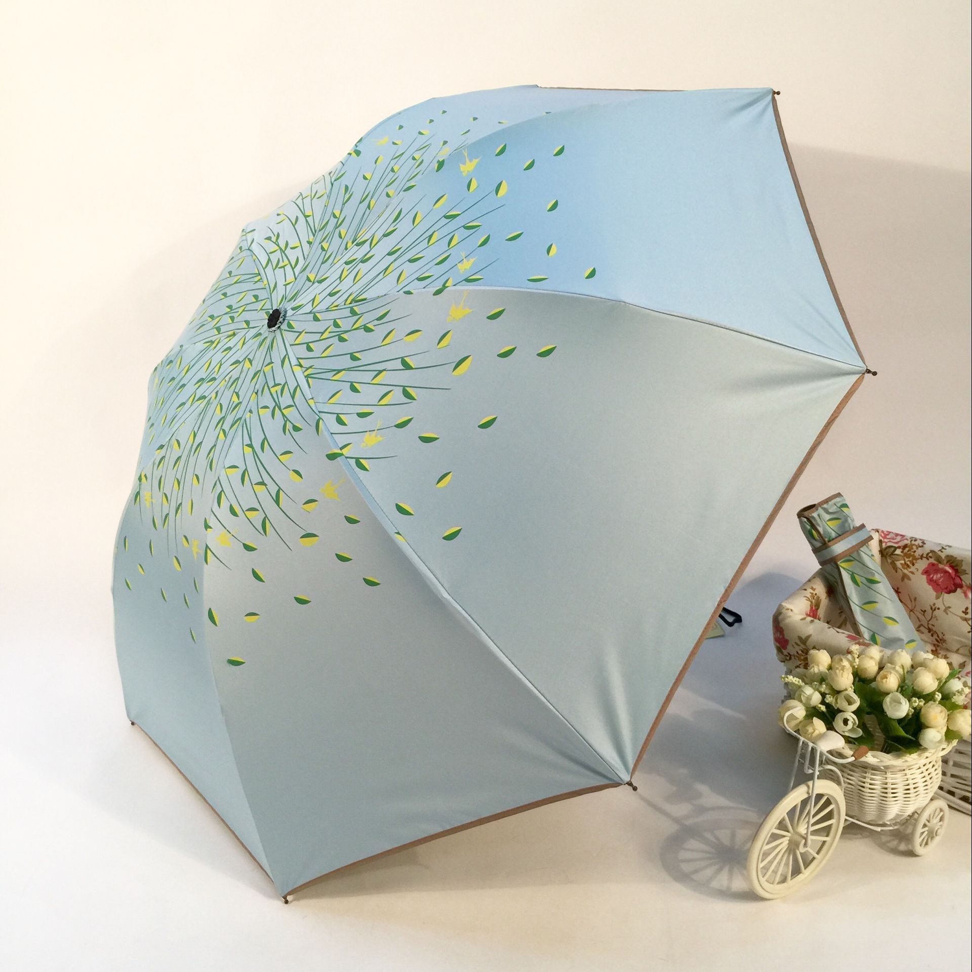 태양 우산 더블 신선한 내부 단풍 잎 패턴 써니 우산 강화 UV 보호 양산 우산 제조 업체 공급
