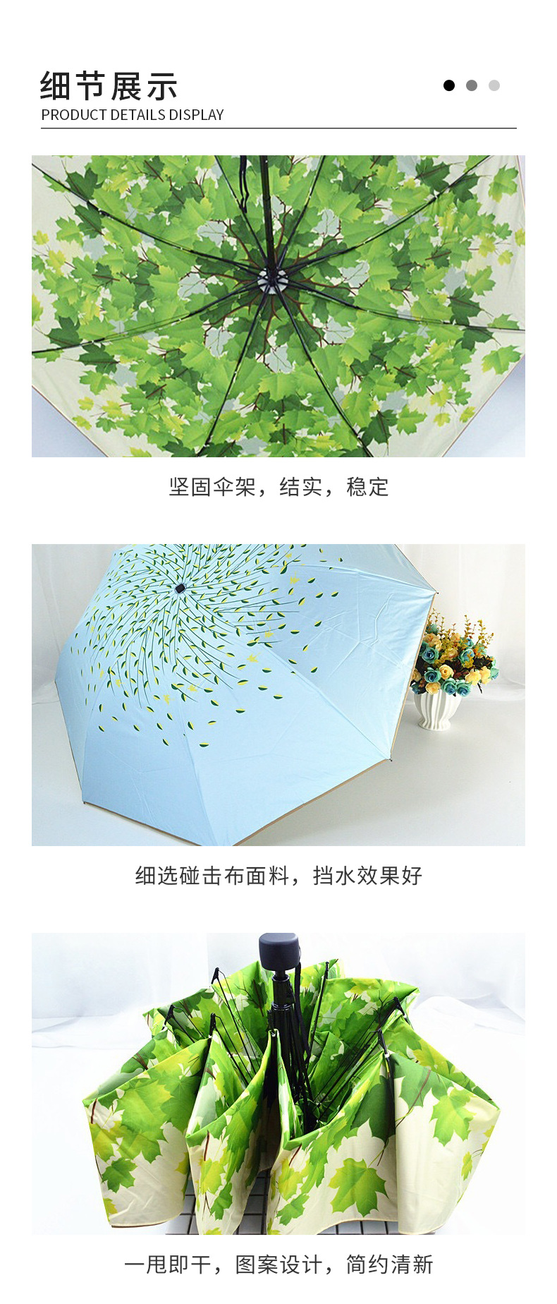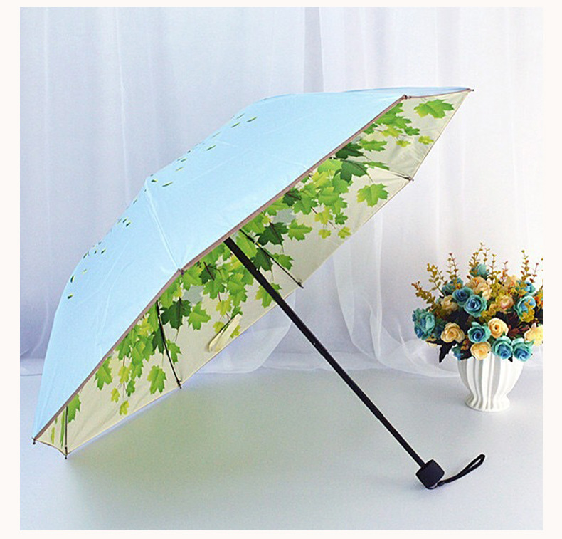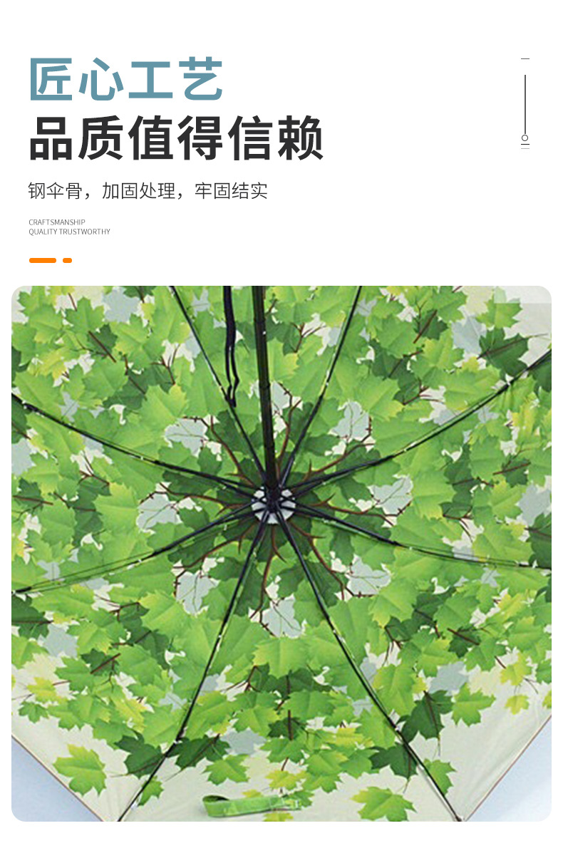 태양 우산 더블 신선한 내부 단풍 잎 패턴 써니 우산 강화 UV 보호 양산 우산 제조 업체 공급스토어 가기