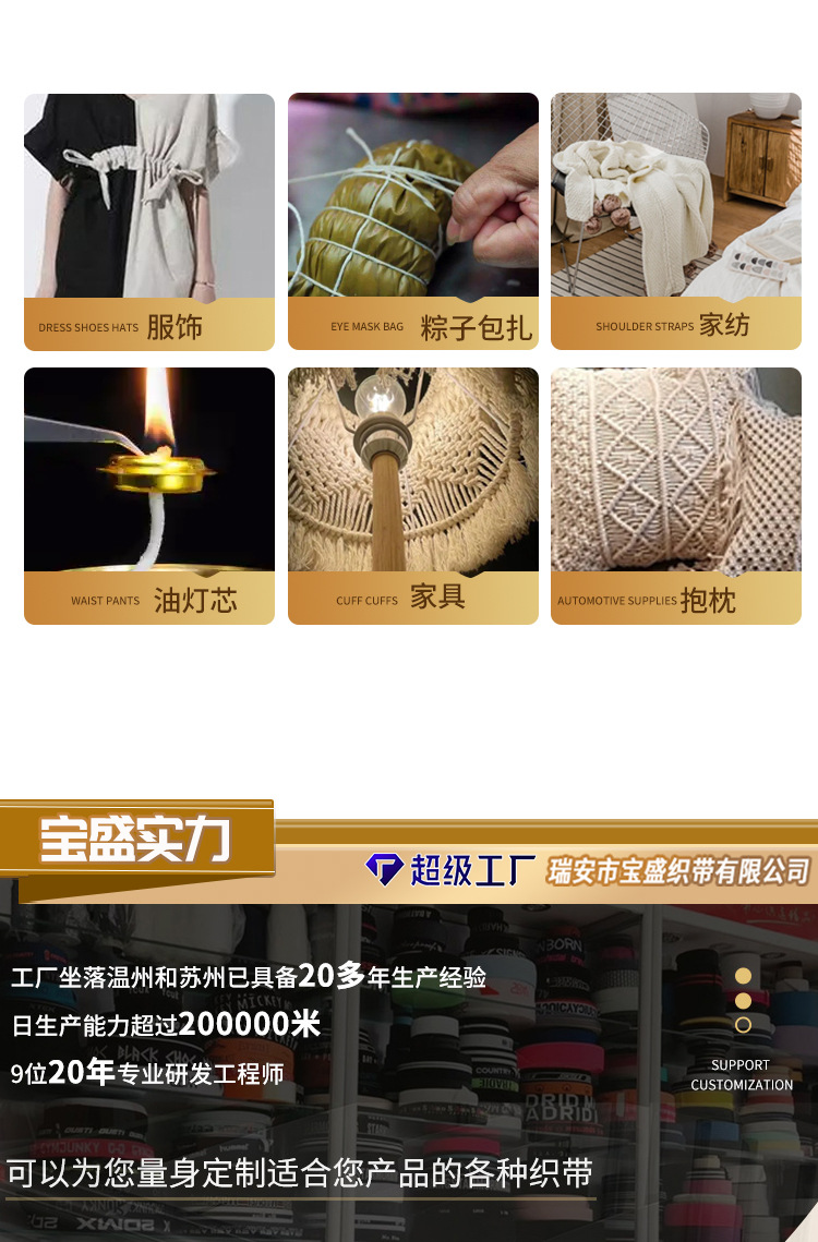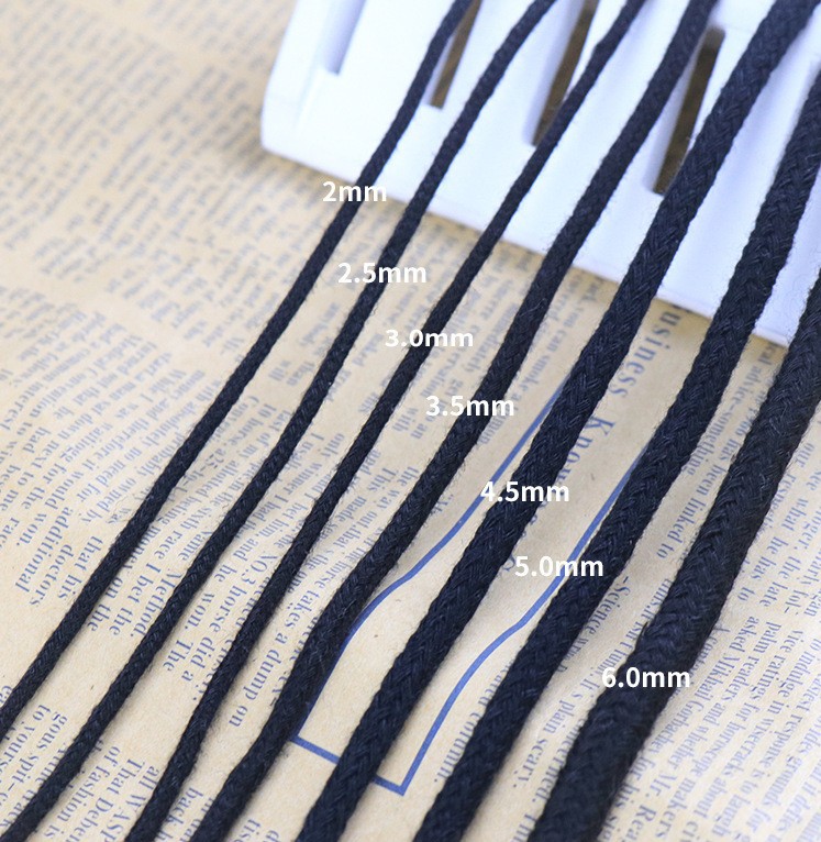 제조업체 1.5-8mm 코어포함 태그용 면끈 검정색 표백된 순백색 조임끈 태그용 끈 쌀만두 끈 롤링 엣지 인레이드 로프