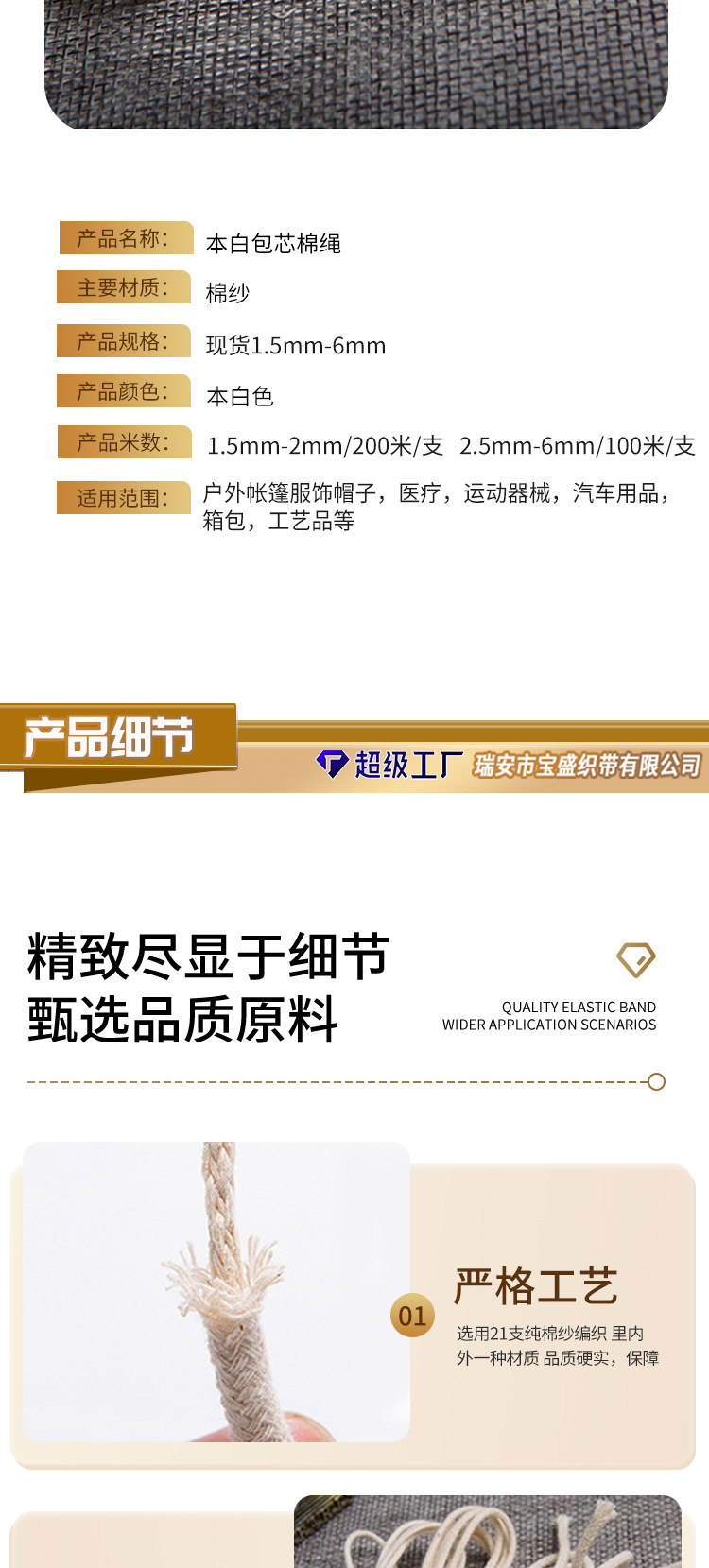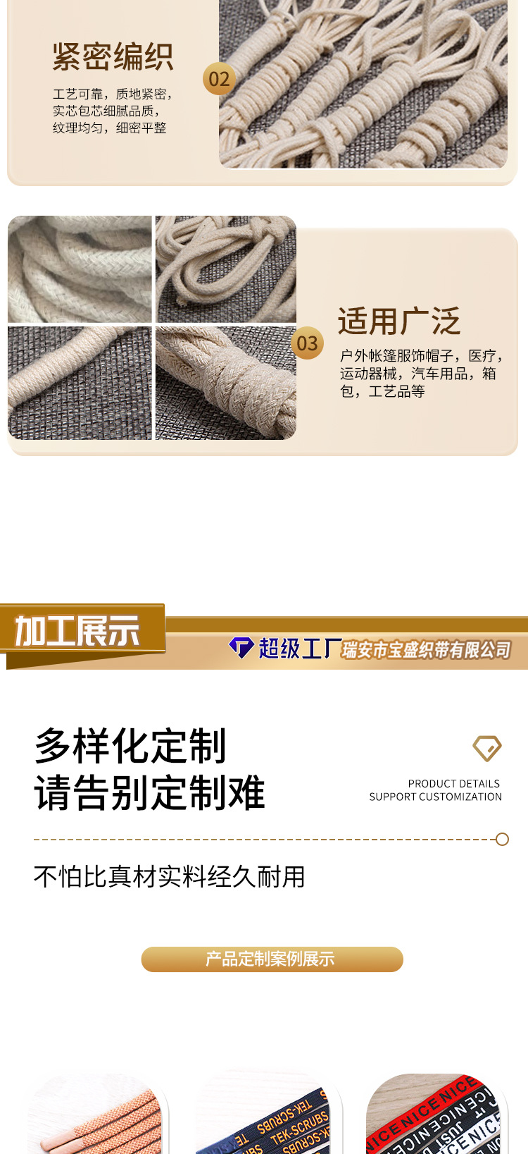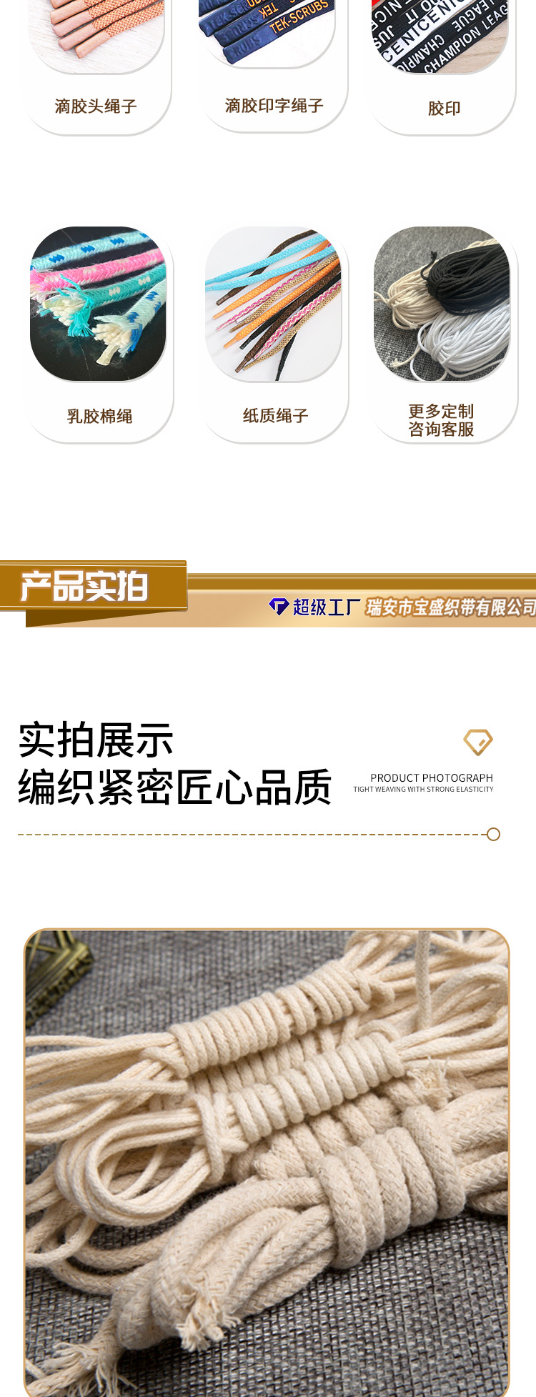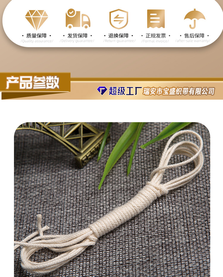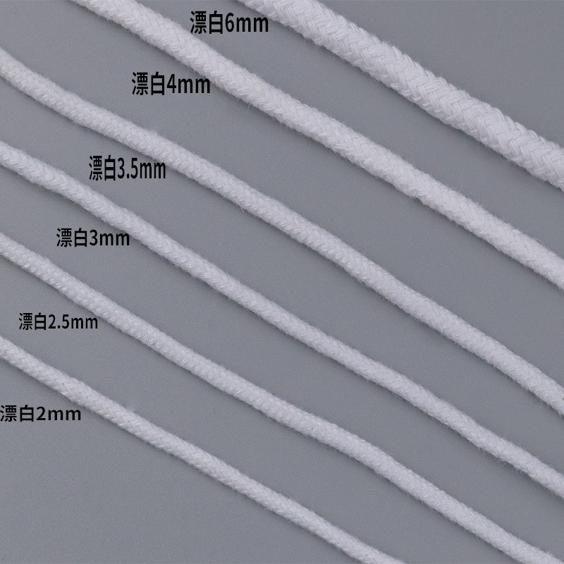 제조업체 1.5-8mm 코어포함 태그용 면끈 검정색 표백된 순백색 조임끈 태그용 끈 쌀만두 끈 롤링 엣지 인레이드 로프스토어 가기