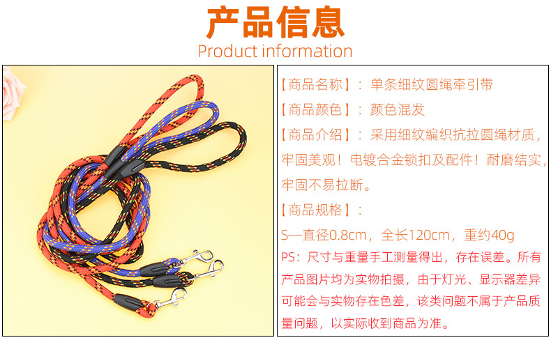 【商品规格】:S—牵引绳直径0.8cm,全长120cm,重约40g