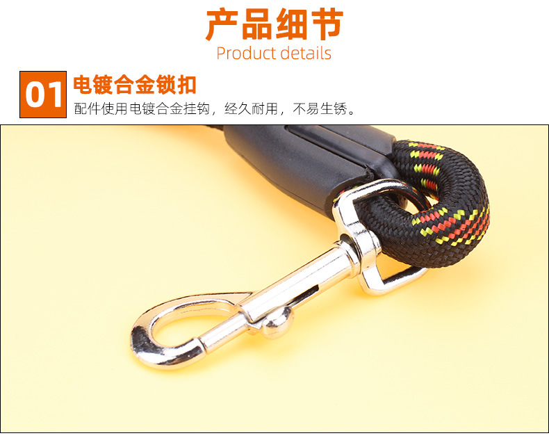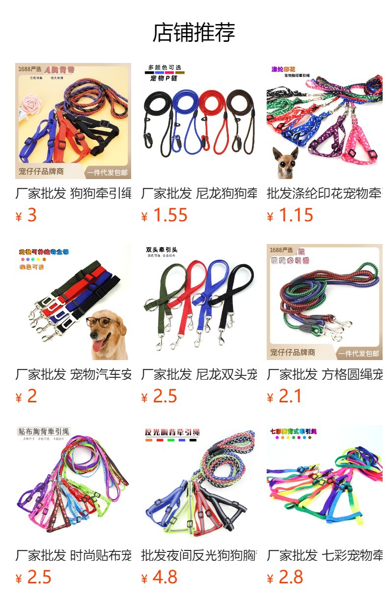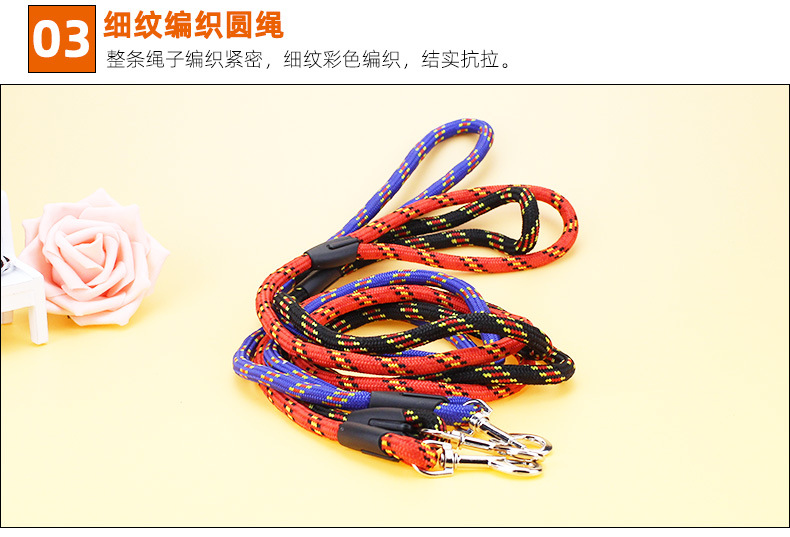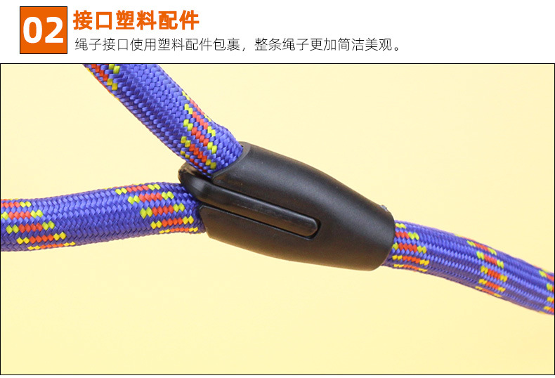 【商品介绍】:采用抗拉细纹圆绳材质,牢固美观!电镀合金锁扣及配件!整条牵引绳既美观实用,耐磨结实,牢固不易拉断。