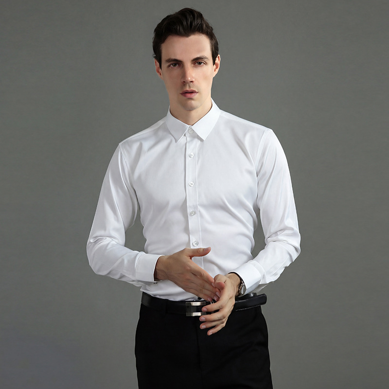 단색 셔츠 남성용 비 다림질 스트레치 통기성 비즈니스 캐주얼 한국 스타일 슬림핏 셔츠 비즈니스웨어 화이트 셔츠 남성용 긴 소매스토어 가기