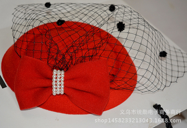 包邮韩版空姐礼帽发夹头饰 帽子发卡面纱发箍女 蕾丝蝴蝶结
