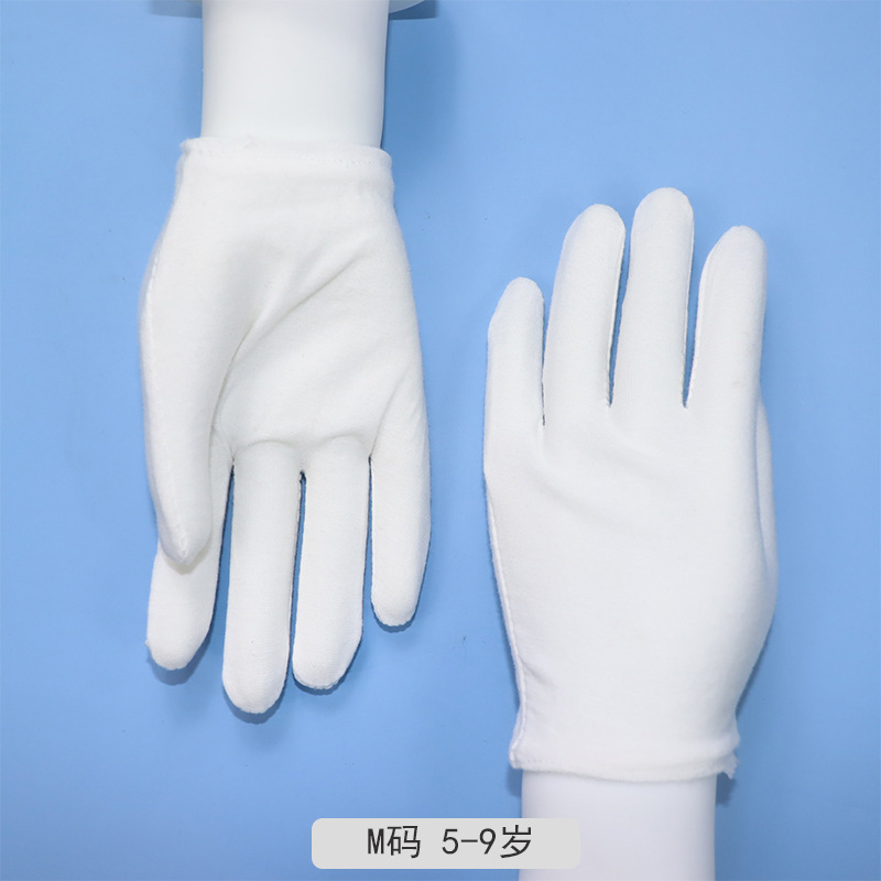 새로운 어린이 성능 흰색 장갑 스트레치 저지 면화 장갑 쇼 성능 어린이 흰색 장갑 제조업체 도매