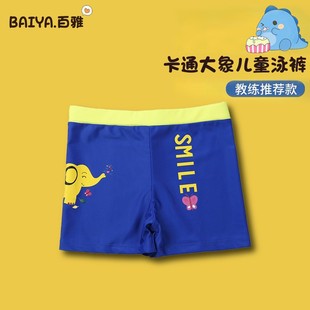 儿童泳裤30-85斤男童中大童印花卡通大象平角涤纶游泳裤厂家直销