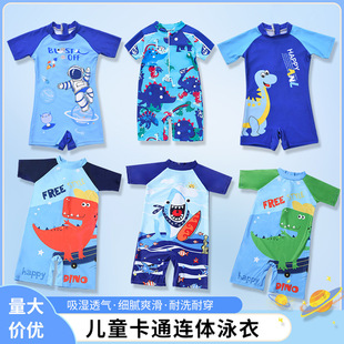 儿童泳衣男童连体中小童泳装男孩短袖卡通沙滩防晒宝宝温泉游泳衣