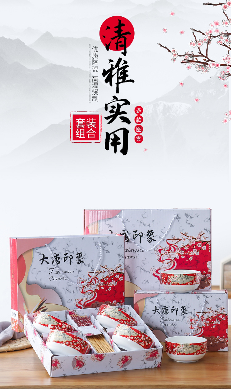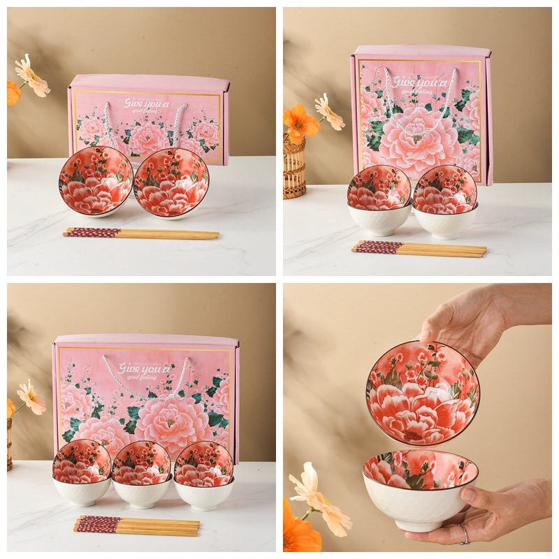 일본식 세라믹 그릇 젓가락 세트 그릇 선물 상자 회사 오프닝 활동은 작은 선물을주는 실용적인 그릇을 판매합니다스토어 가기