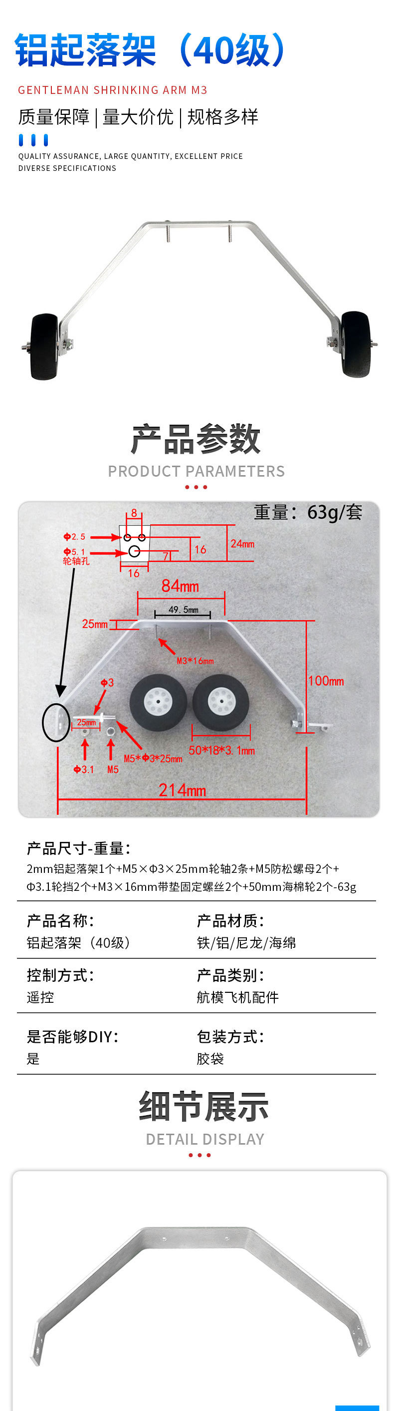 공장 직접 고정익 항공기 모델 랜딩 기어 세트 전기 항공기 25-40 등급 알루미늄 랜딩 기어 세트스토어 가기