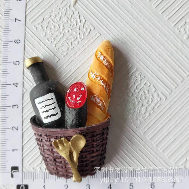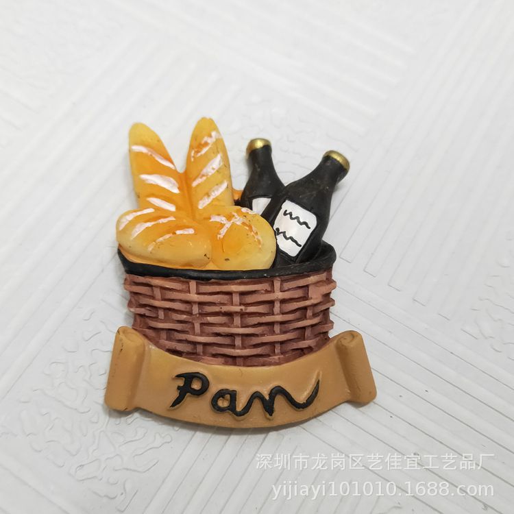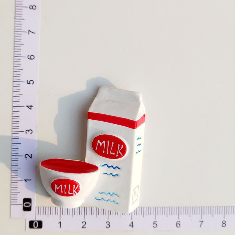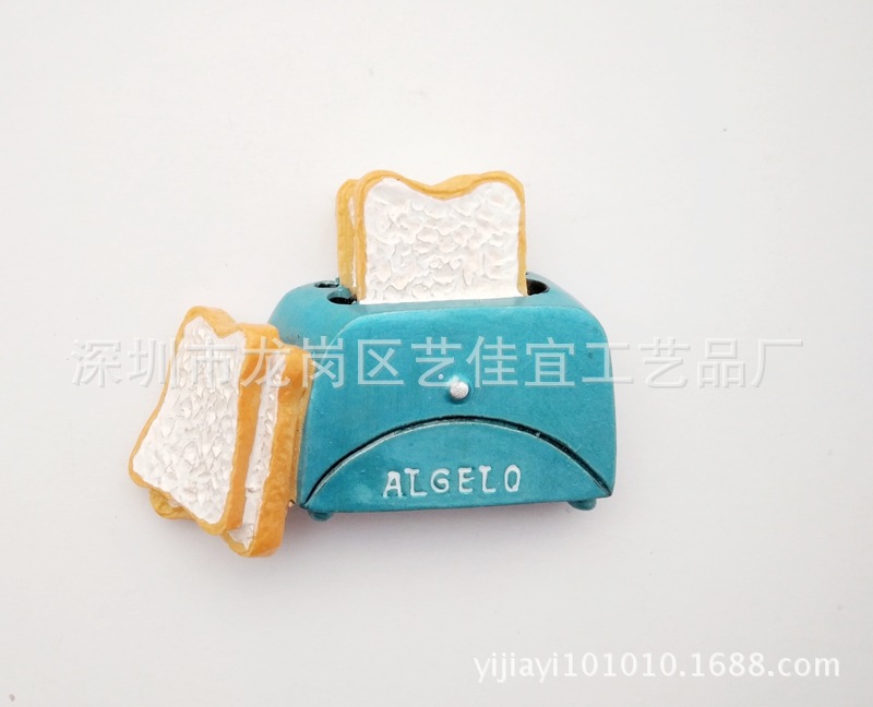 시뮬레이션 3D 입체 음식 놀이 아침 식사 미식가 자루 빵 토마토 계란 토스트 커피 수지 냉장고 자석