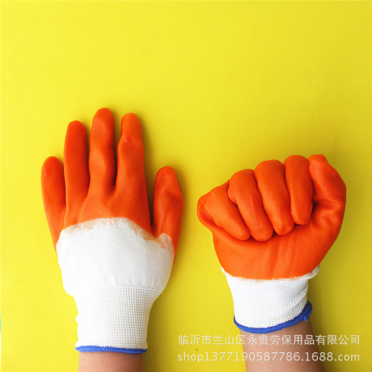 PVC临沂 挂胶手套 十三针尼龙手套浸胶手套 pvc涂胶手套批发 临沂手套批发 大半挂手套 全挂手套 小半挂手套 平挂手套 临沂劳保防护手套 厂家