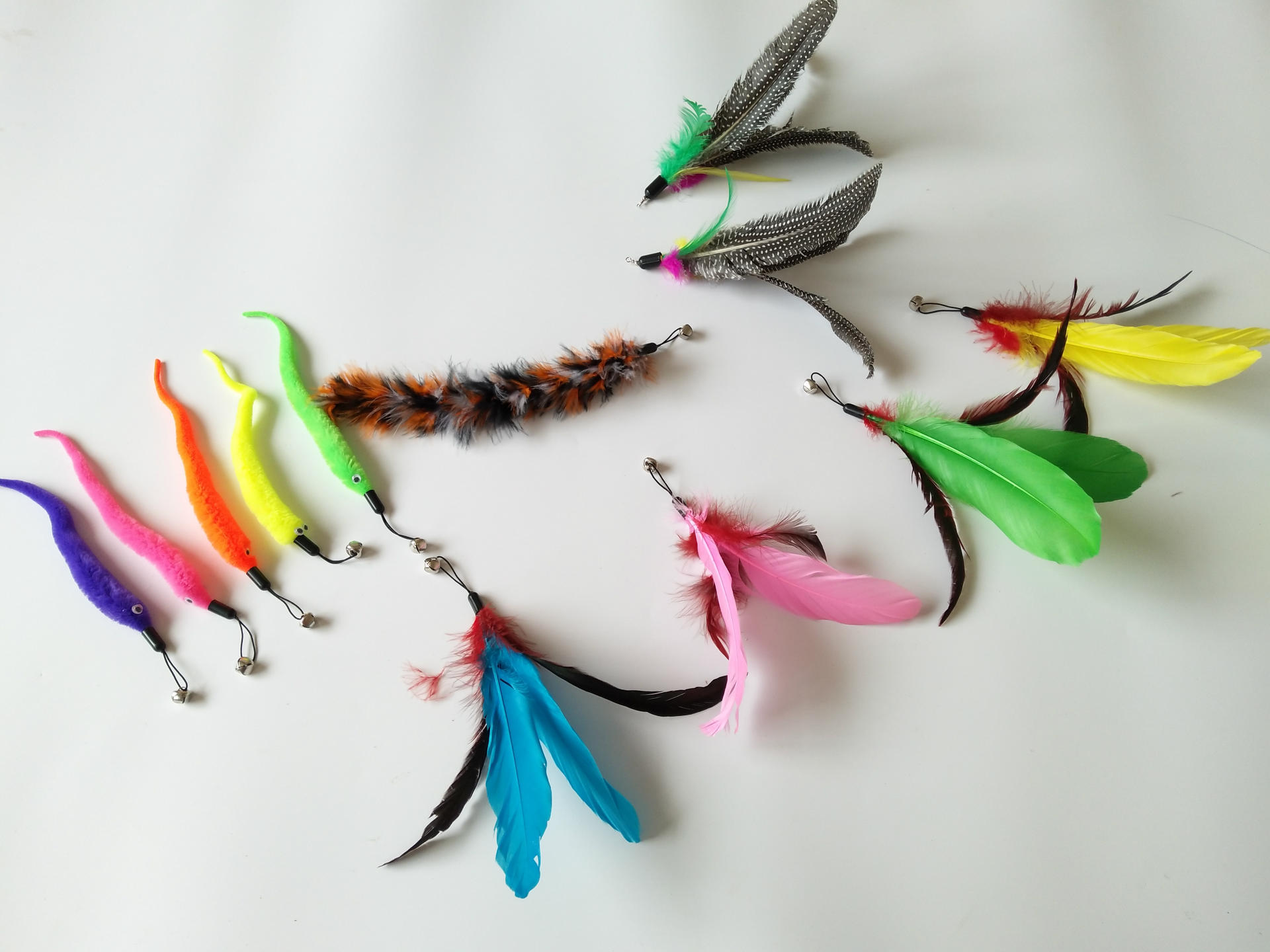 도매 고양이 장난감 재미있는 고양이 스틱 깃털 교체 머리 애벌레 교체 머리 애완 동물 장난감스토어 가기