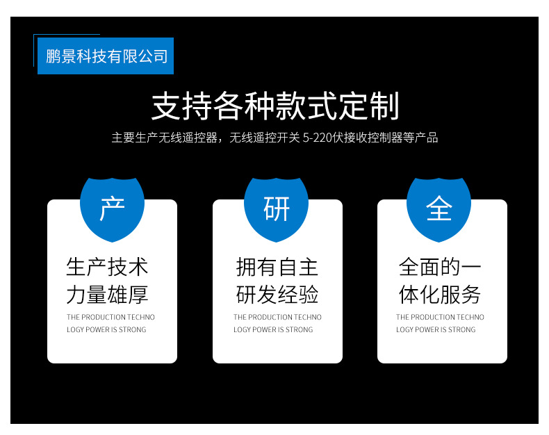 SC2262固定编码;采用大功率发射管3357发射信号,遥控距离200米以上;采用12V23A柱状电池供电,带低压检测功能;尺寸:17*38*96mm