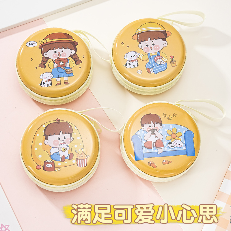 어린이 창조적 인 귀여운 틴플레이트 동전 지갑 만화 동전 지갑 이어폰 라인 둥근 지퍼 보관 가방 작은 선물스토어 가기
