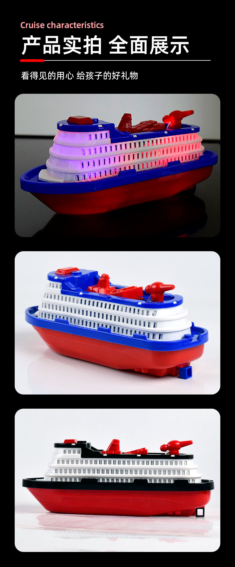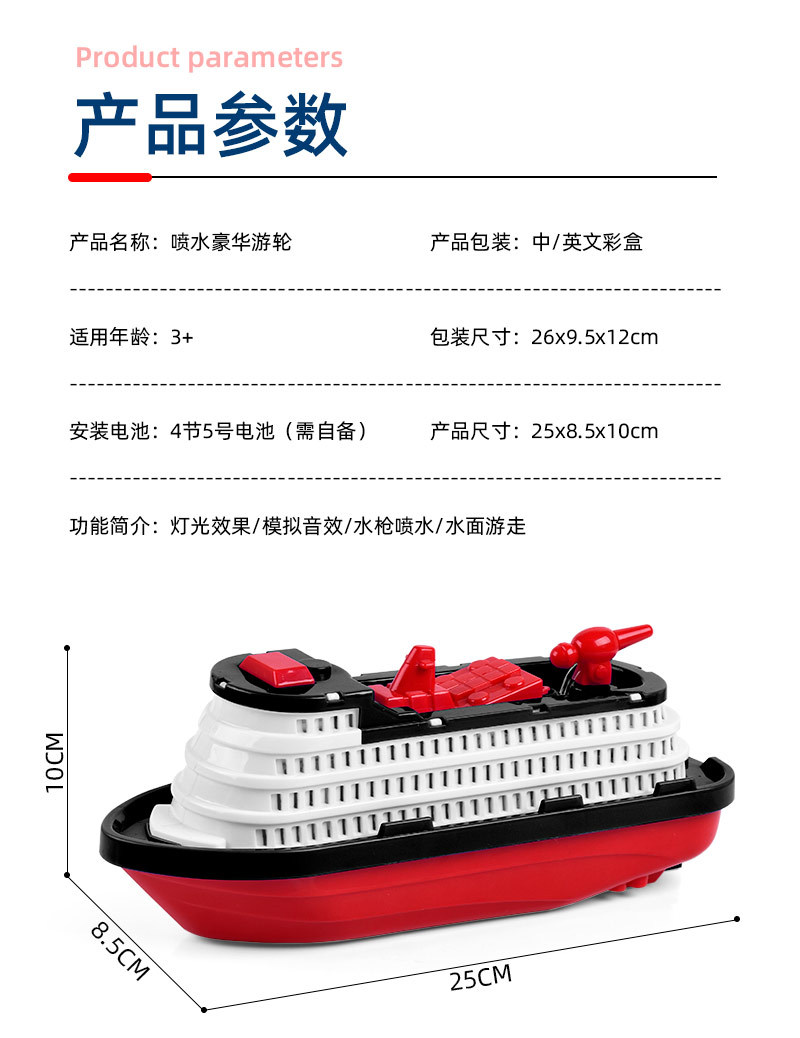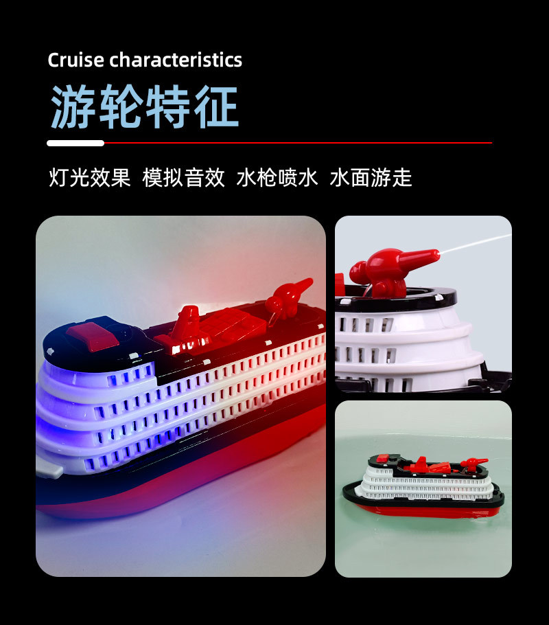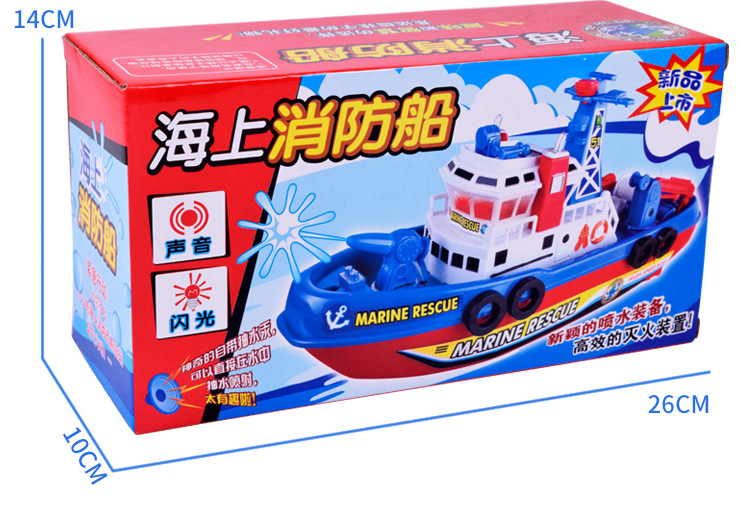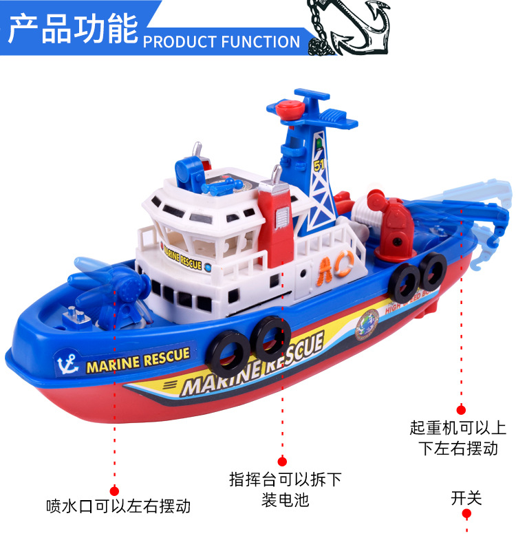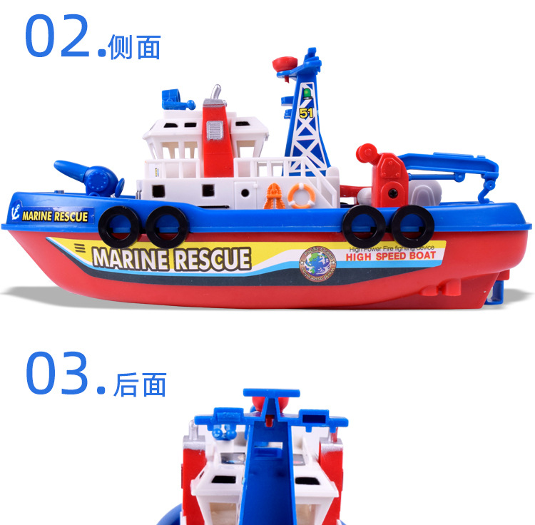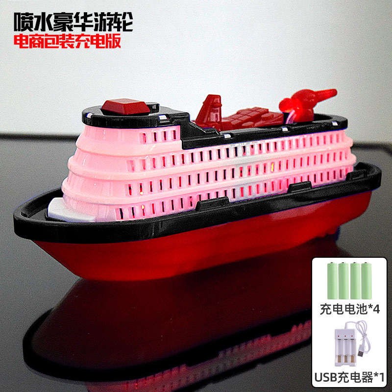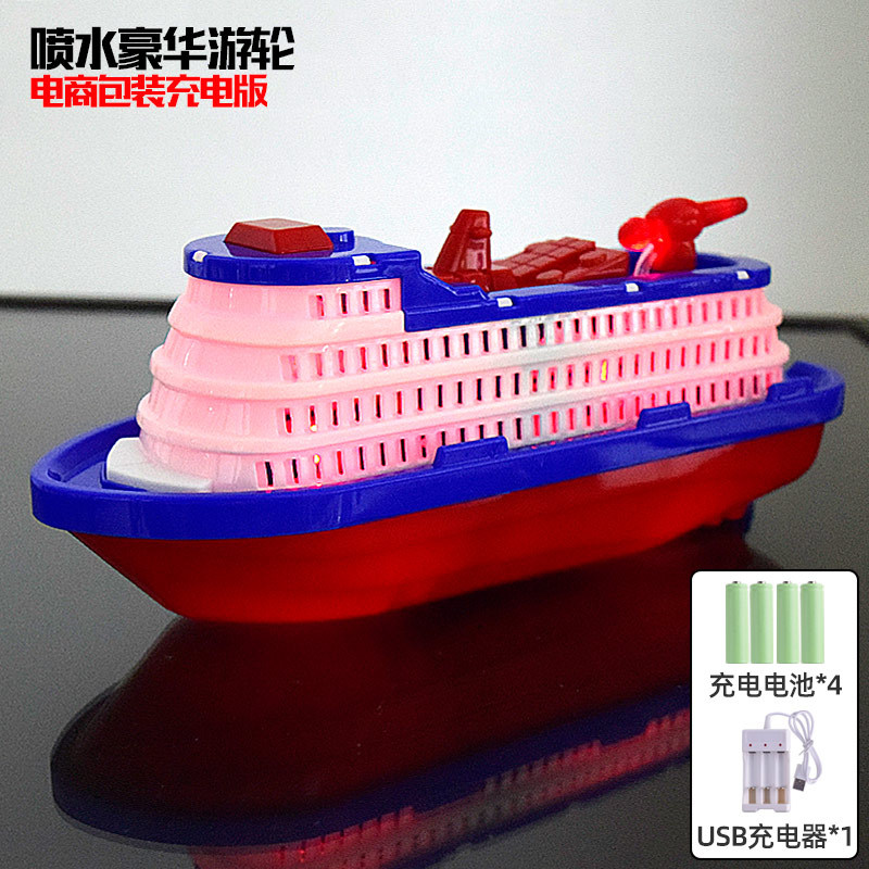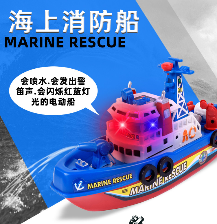 새롭고 독특한 전기 장난감 크루즈선, 발광 및 물 분사 기능이 있는 소방선, 어린이 장난감 배, 야시장 도매 및 노점 판매스토어 가기