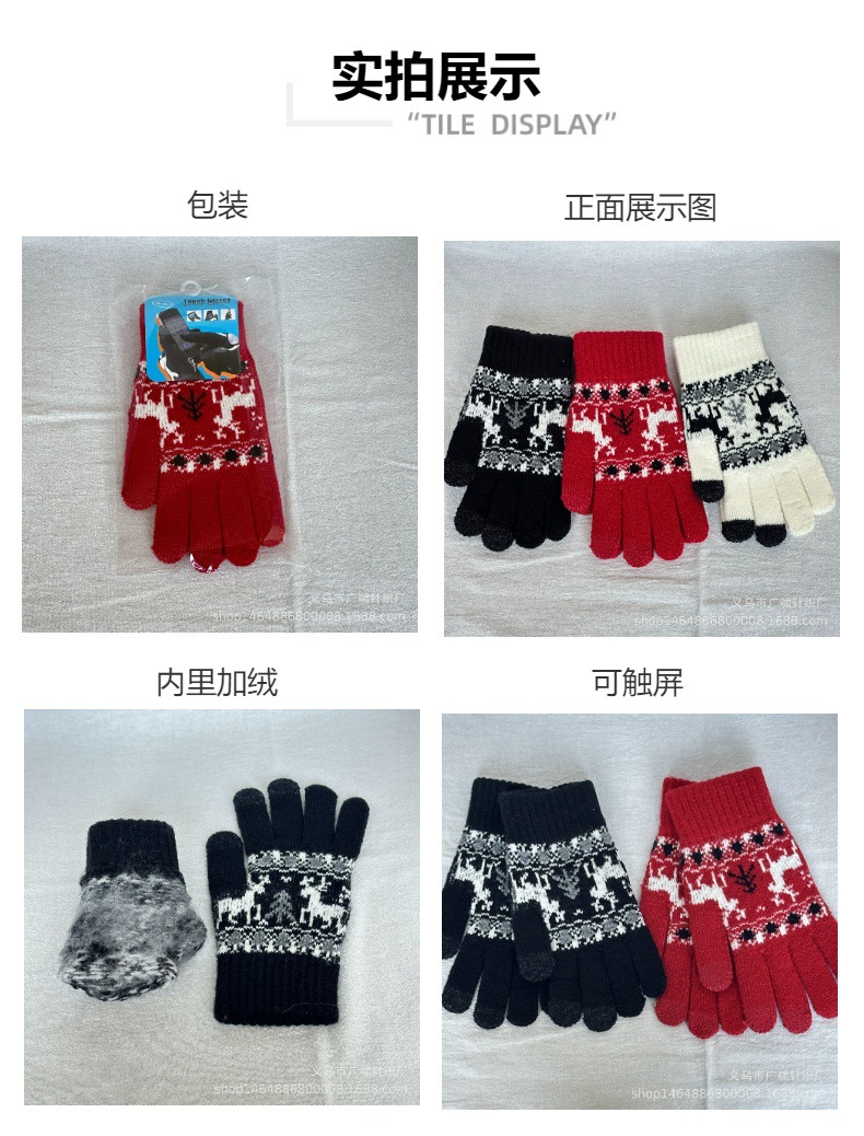 선물용 크리스마스 사슴 터치스크린 장갑, 방풍 남성용 따뜻한 니트 장갑, 방한 터치스크린 가능 아크릴 장갑스토어 가기