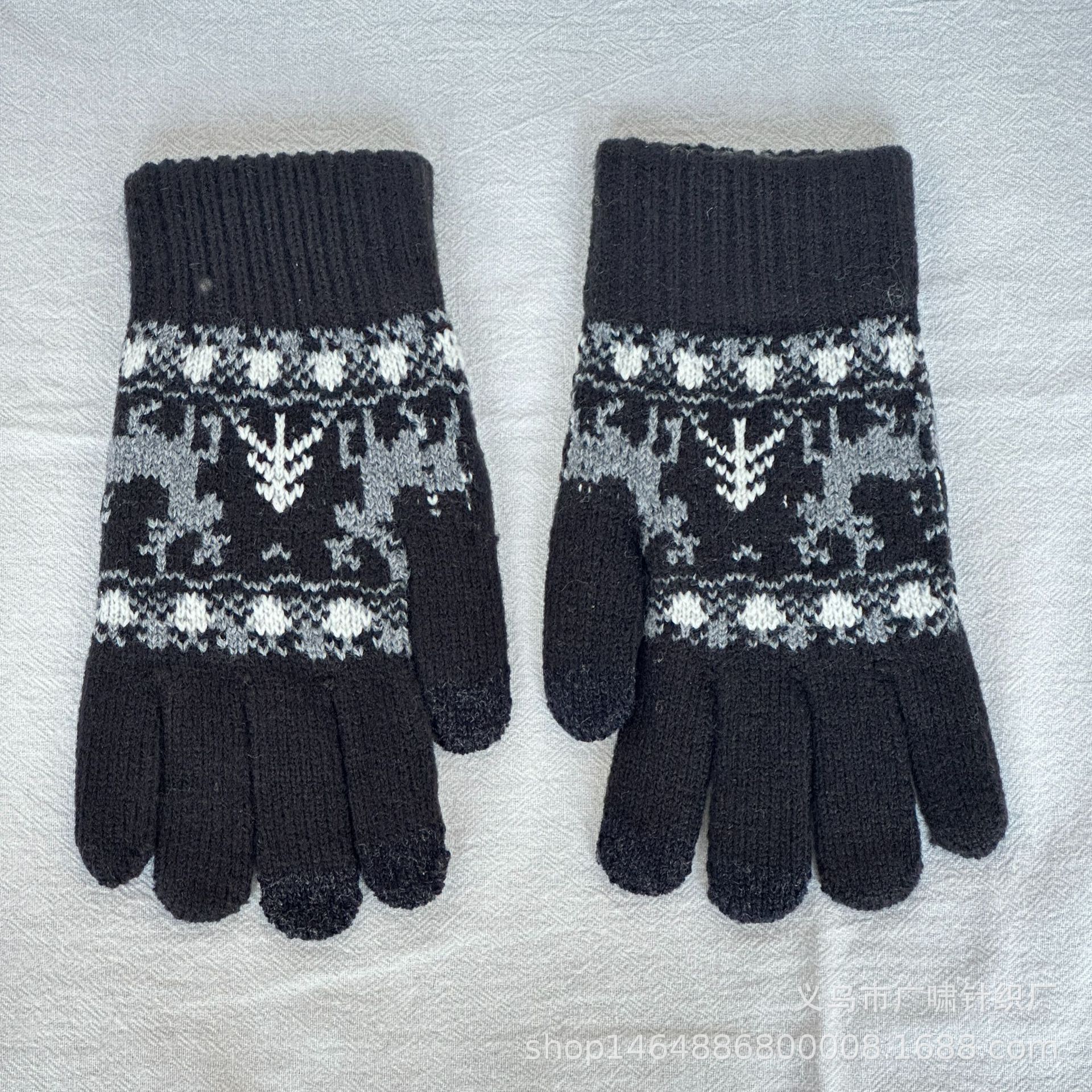 선물용 크리스마스 사슴 터치스크린 장갑, 방풍 남성용 따뜻한 니트 장갑, 방한 터치스크린 가능 아크릴 장갑