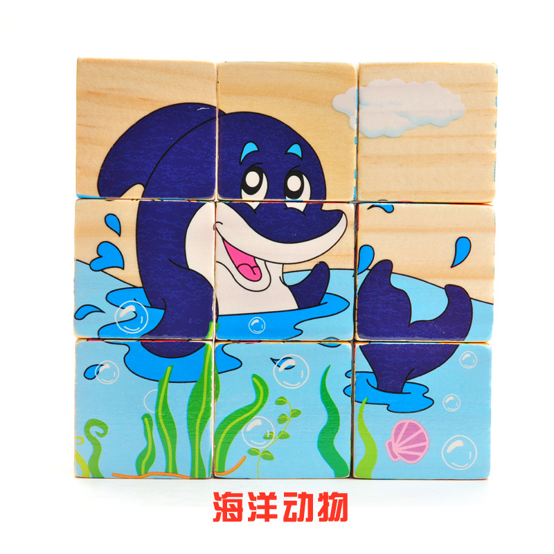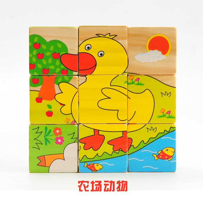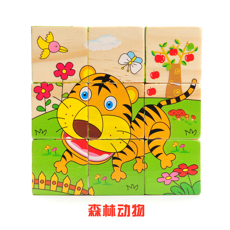 포장 마차 판매 장난감 도매 어린이 교육 아기 조기 교육 9 입체 퍼즐 만화 동물 육면 그림