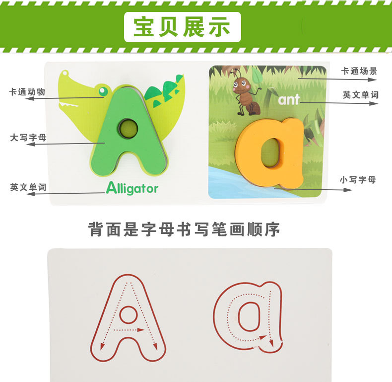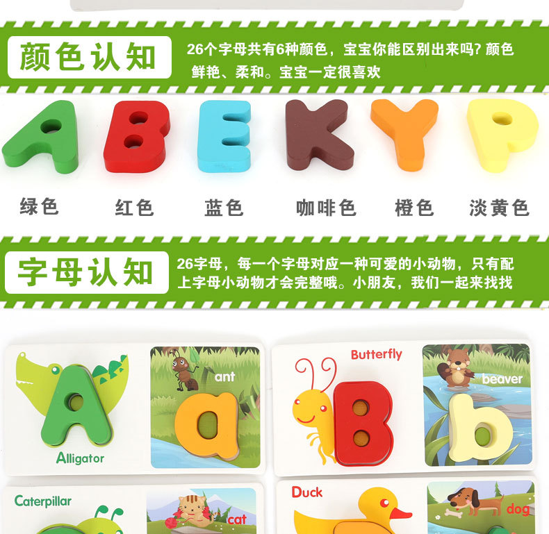 어린이 영어 문자 일치 퍼즐 조기 교육 나무 장난감 공장 도매스토어 가기