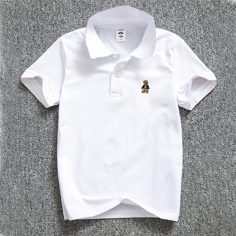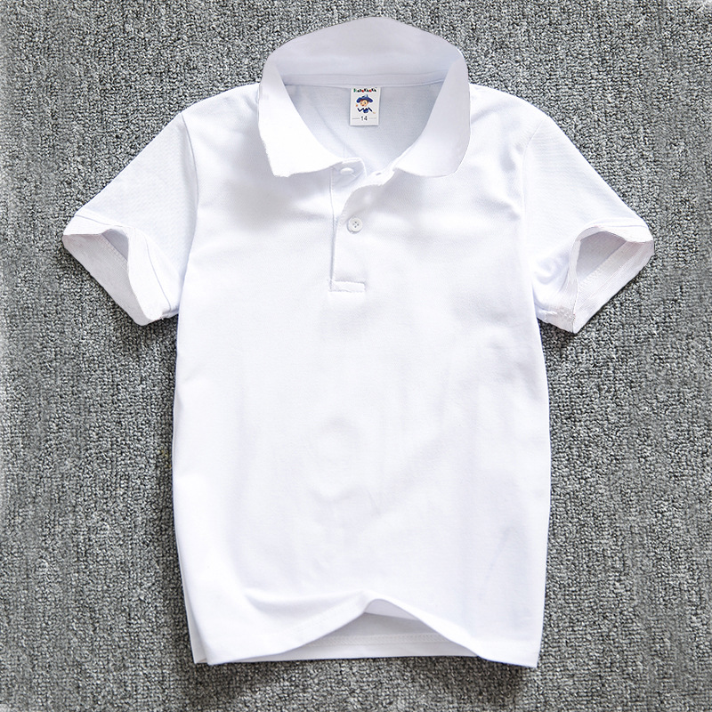 어린이 흰색 반팔 티셔츠 코튼 폴로 셔츠 남학생 초등 및 중등 학교 학생 교복 학교 유니폼 흰색 티셔츠 소녀 여름 탑