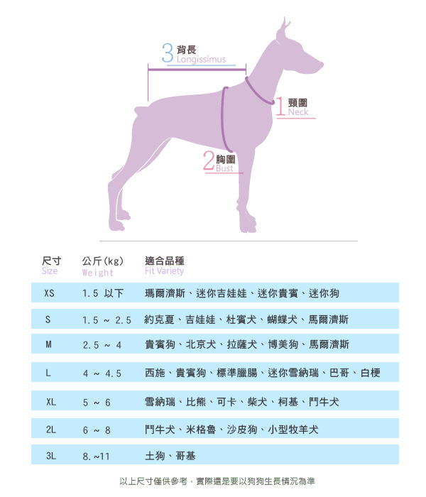 XS:参考犬种:小型猫,吉娃娃,约克夏 |