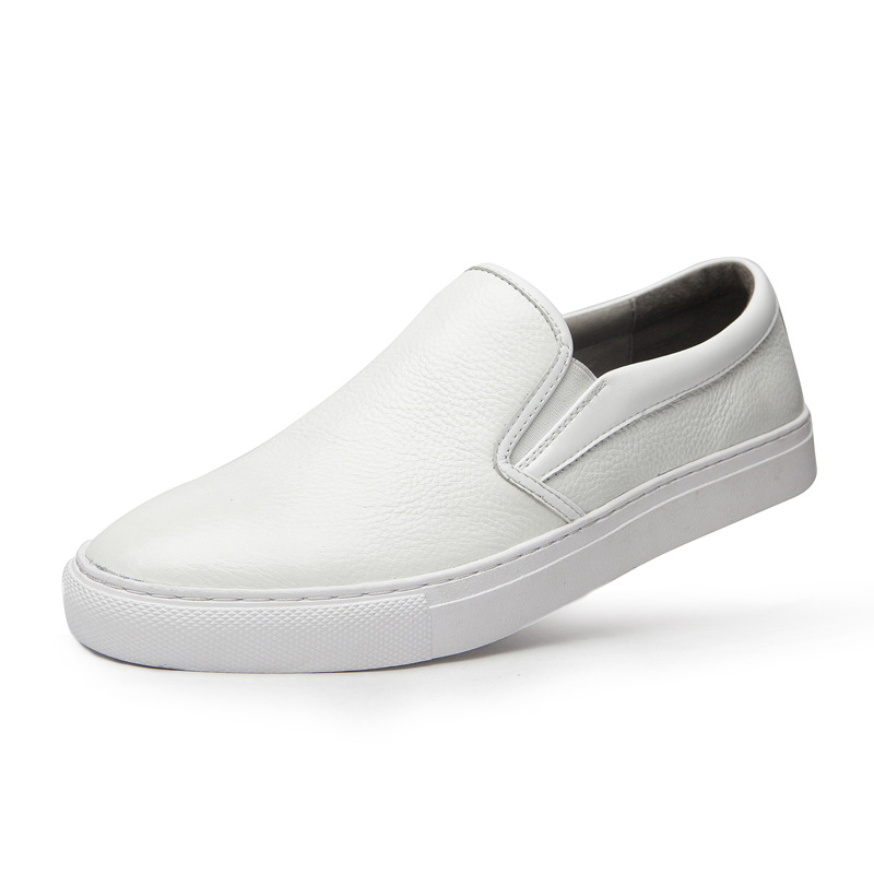 남성용 정품 가죽 화이트 로퍼 한국 스타일 모든 매치 캐주얼 스니커즈 유행 통기성 슬립온 남성 신발 중공 남성 신발