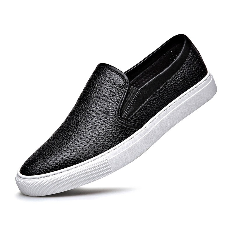 남성용 정품 가죽 화이트 로퍼 한국 스타일 모든 매치 캐주얼 스니커즈 유행 통기성 슬립온 남성 신발 중공 남성 신발스토어 가기