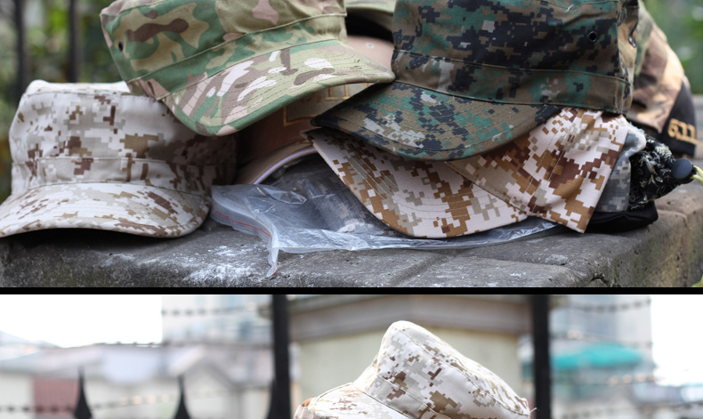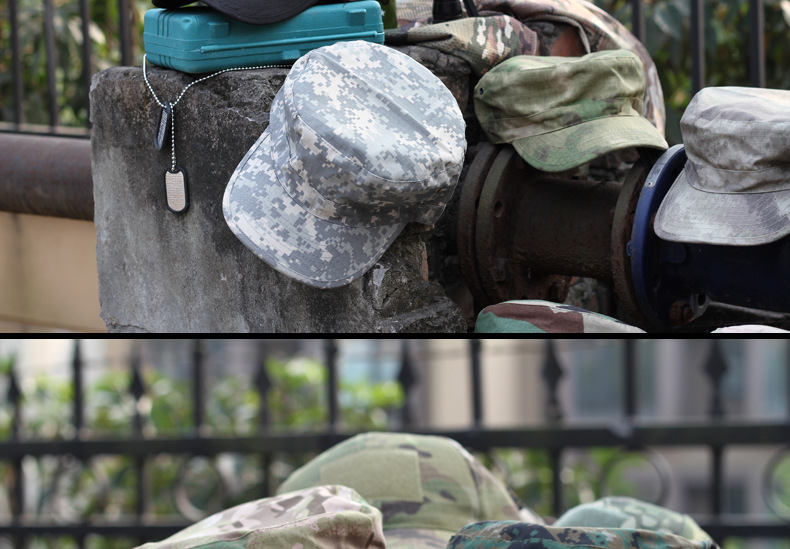 국경 간 소스 여름 위장 레저 플랫 캡 야외 남성과 여성의 군사 팬 모자 전투 모자 소형 군인 모자