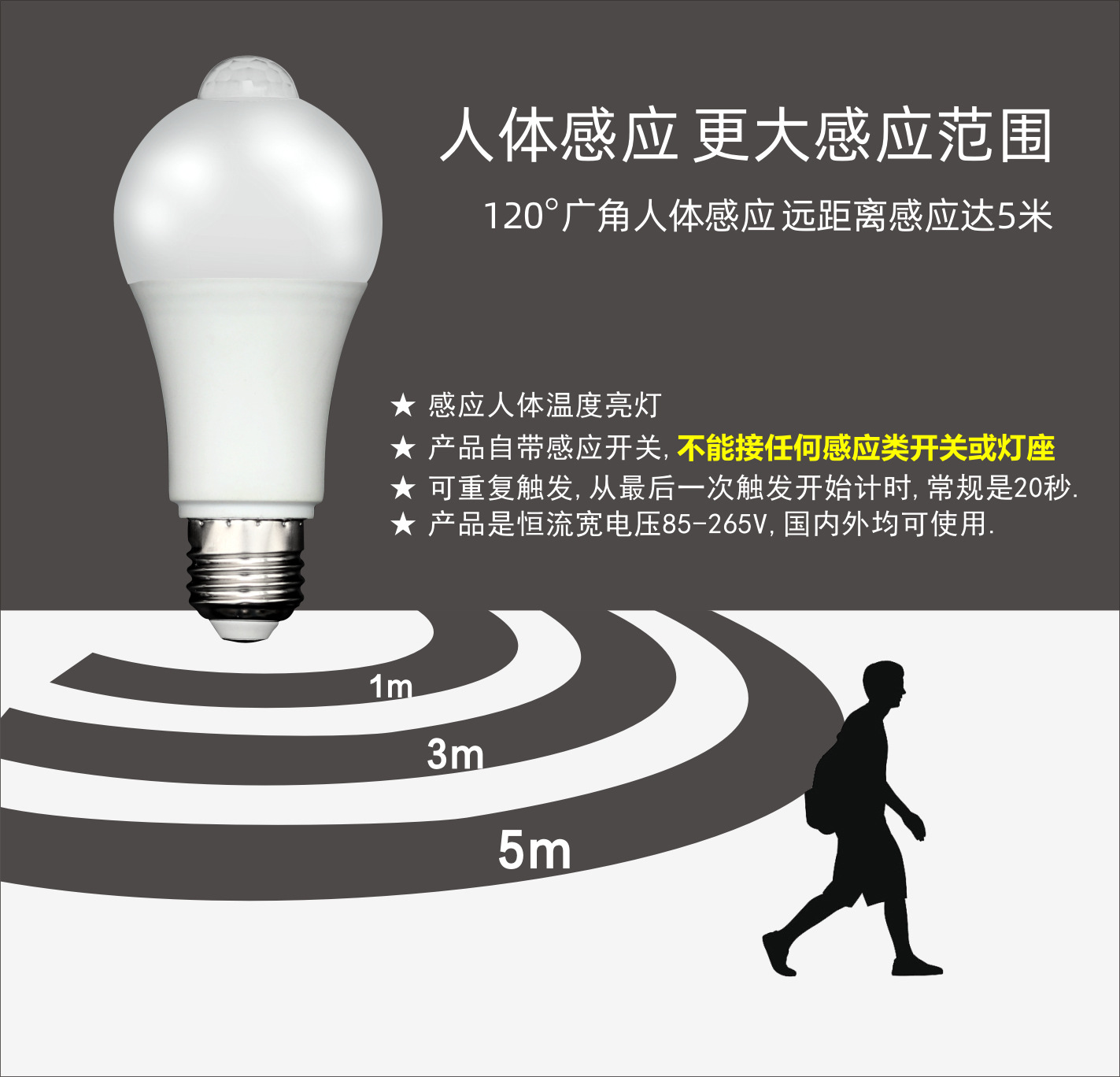 지능형 인체 적외선 유도 램프 led 전구 램프 지능형 계단 건너기 도교등이 들어오고 나간다