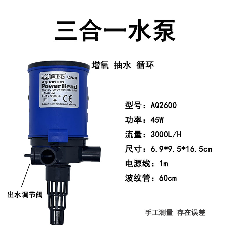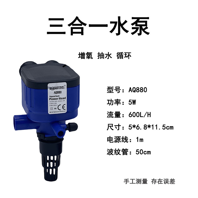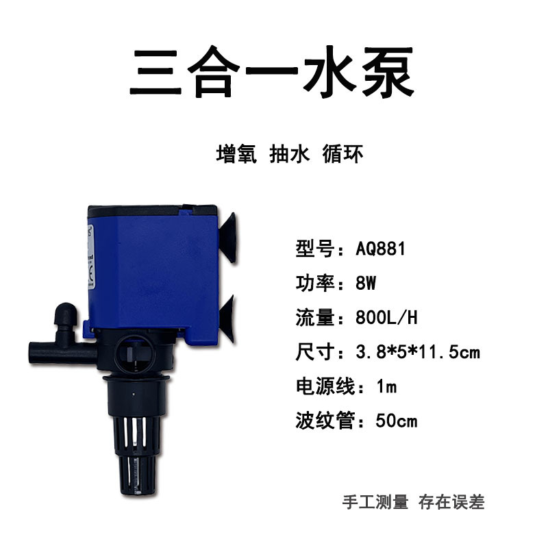 초저소음 AQ881 쓰리인원 워터 펌프 어항 펌프 수족관 수중 펌프 내장 필터 펌프 산소 펌프