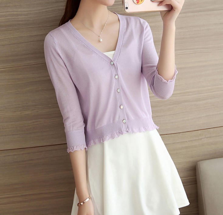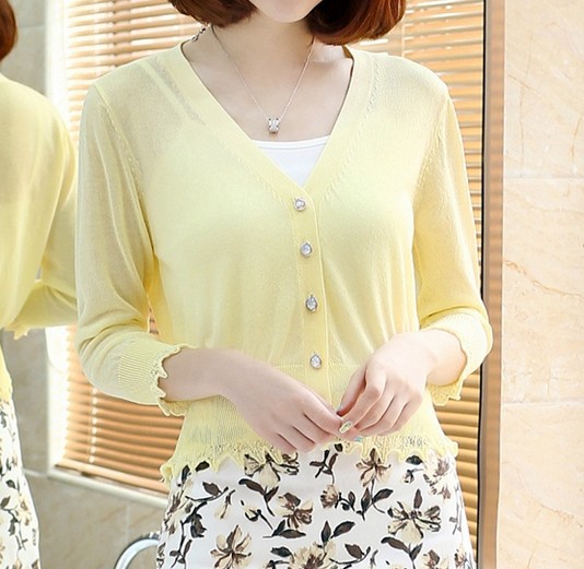 여름 얇은 여성용 가디건 짧은 니트 스웨터 7 점 슬리브 코트 외부 숄 아이스 실크 자외선 차단제 셔츠 에어컨 셔츠스토어 가기