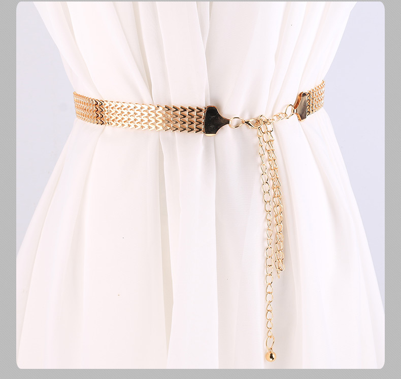 재고 금속 물결 모양의 꼰 벨트 여성의 넓은 체인 장식 허리 체인 간단한 원피스 벨트 금속 허리 체인
