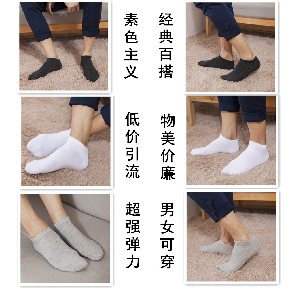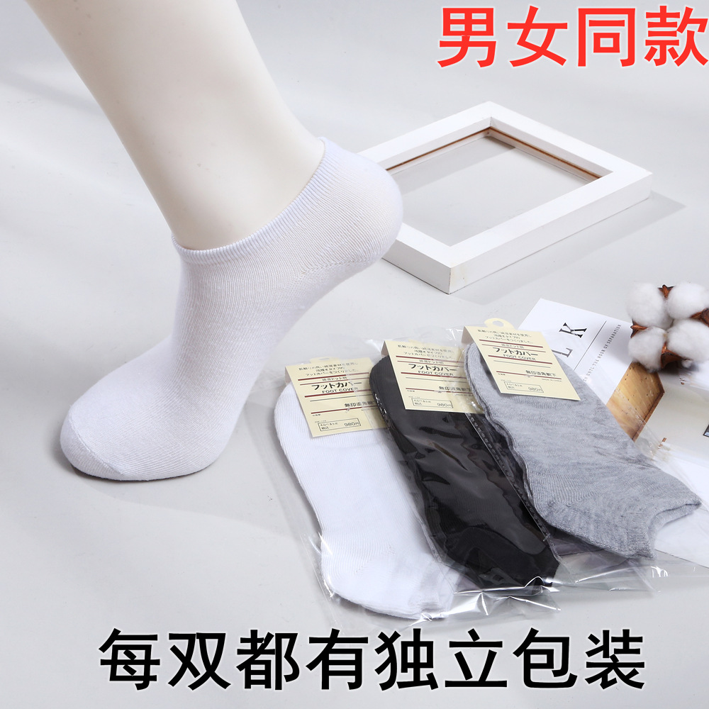 흑백 회색 저렴한 양말 남성과 여성을 위한 얕은 입 보트 양말 제조 업체 도매 독립적으로 포장 된 무료 양말 캐주얼면 양말스토어 가기
