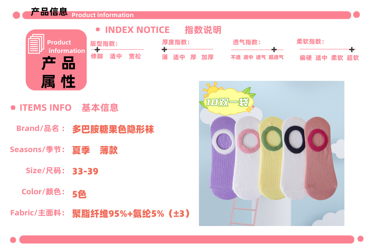• 개별 포장된 컬러 분리형 투명 양말 33-39