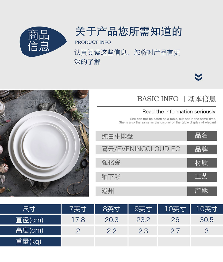 순백색 스테이크 접시 서양 음식 접시 창조적 인 단 접시 세라믹 식기 간단한 북유럽 스타일 뷔페 접시 도매스토어 가기