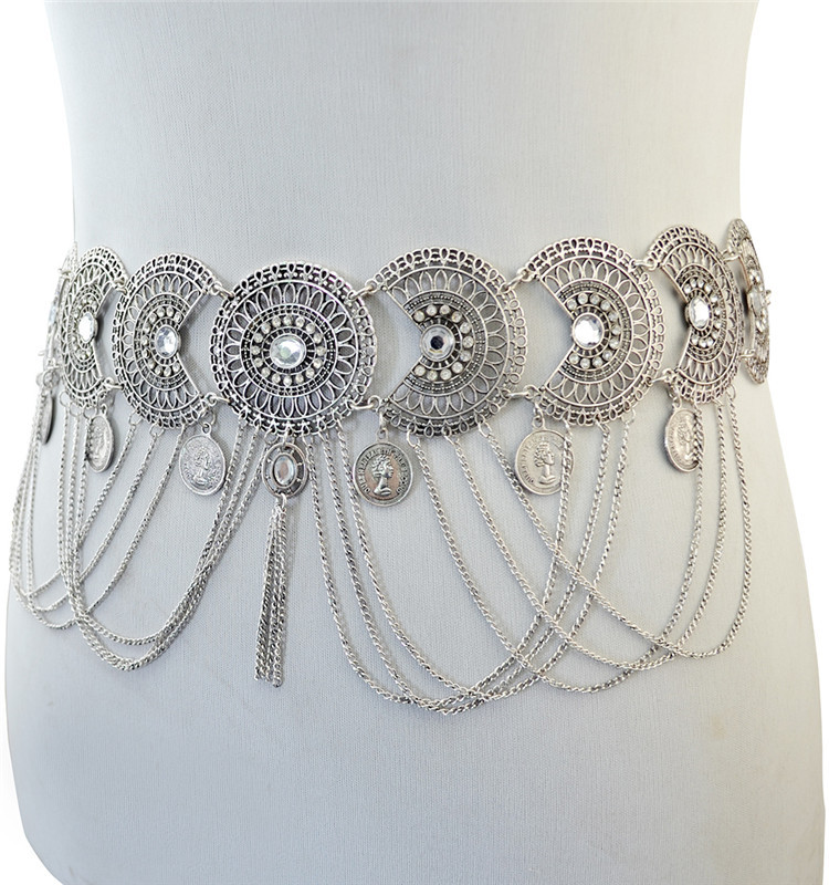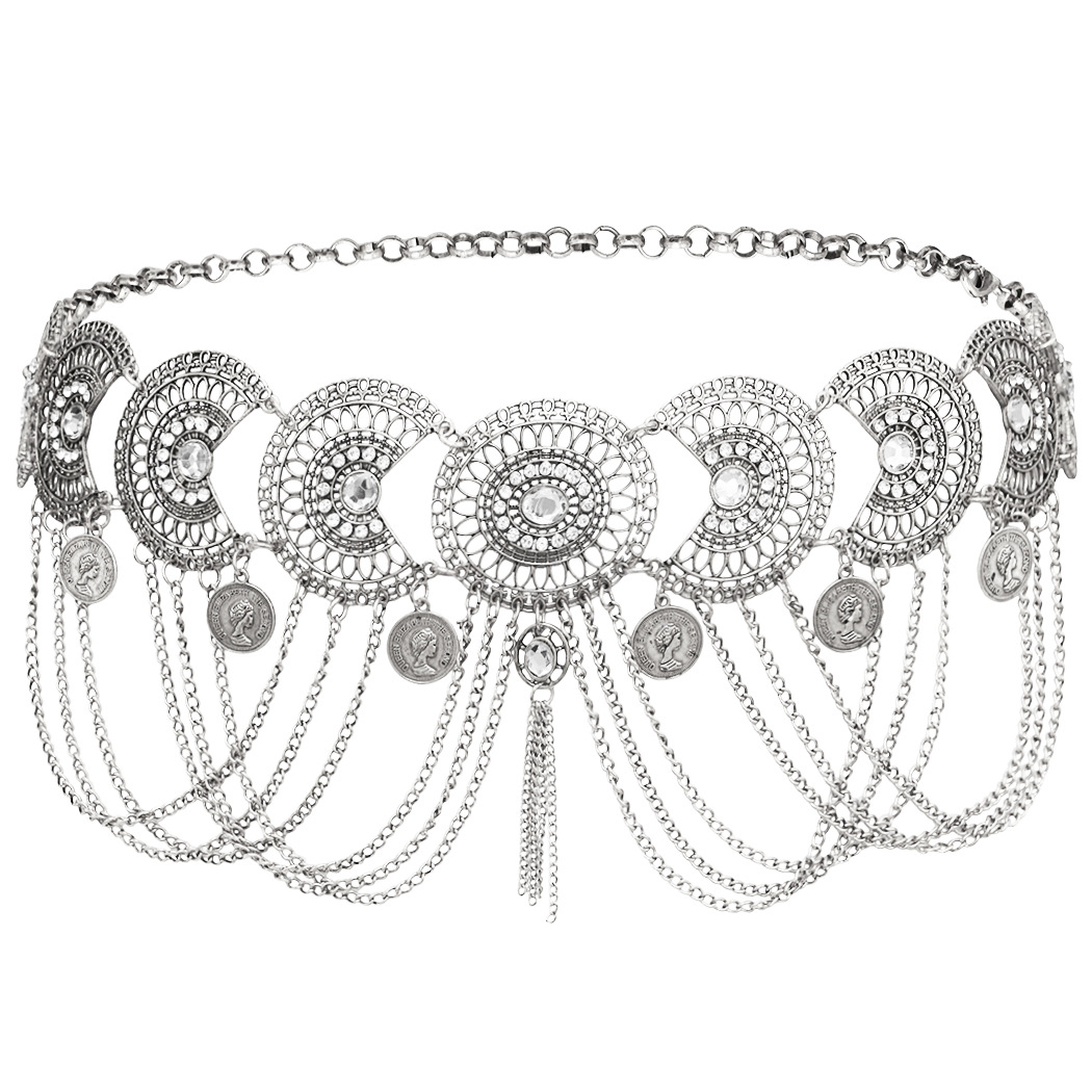 패션 복고풍 동전 술 허리 체인 댄스 캐주얼 인기 유럽과 미국 바디 체인 허리 보석 도매 직판스토어 가기