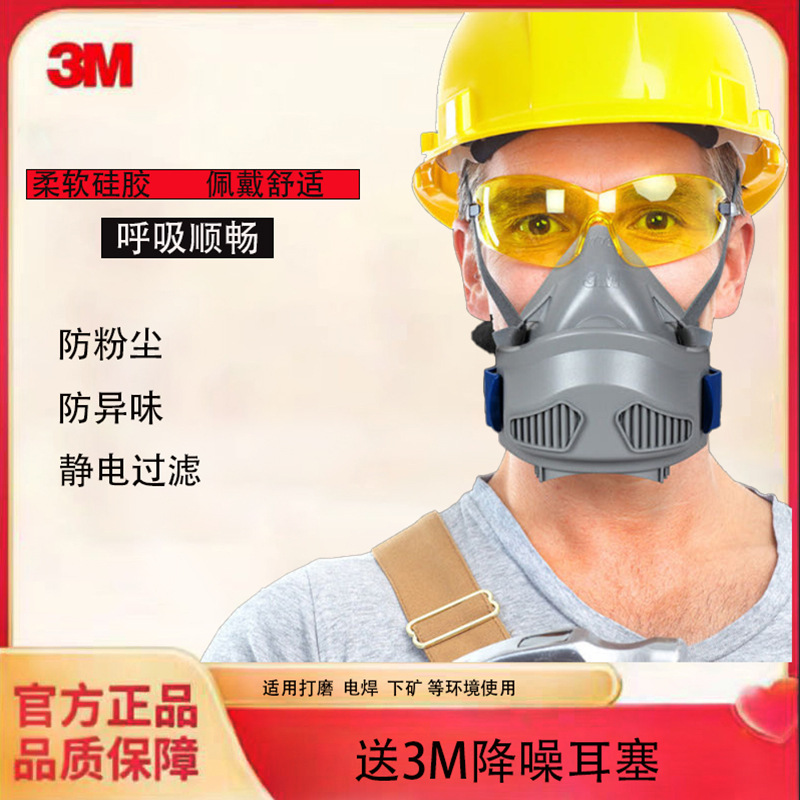 3M7772 방진 마스크 실리콘 소재 편안한 방전 방지 용접 연기 산업 먼지 석탄 통기성 보호 마스크스토어 가기