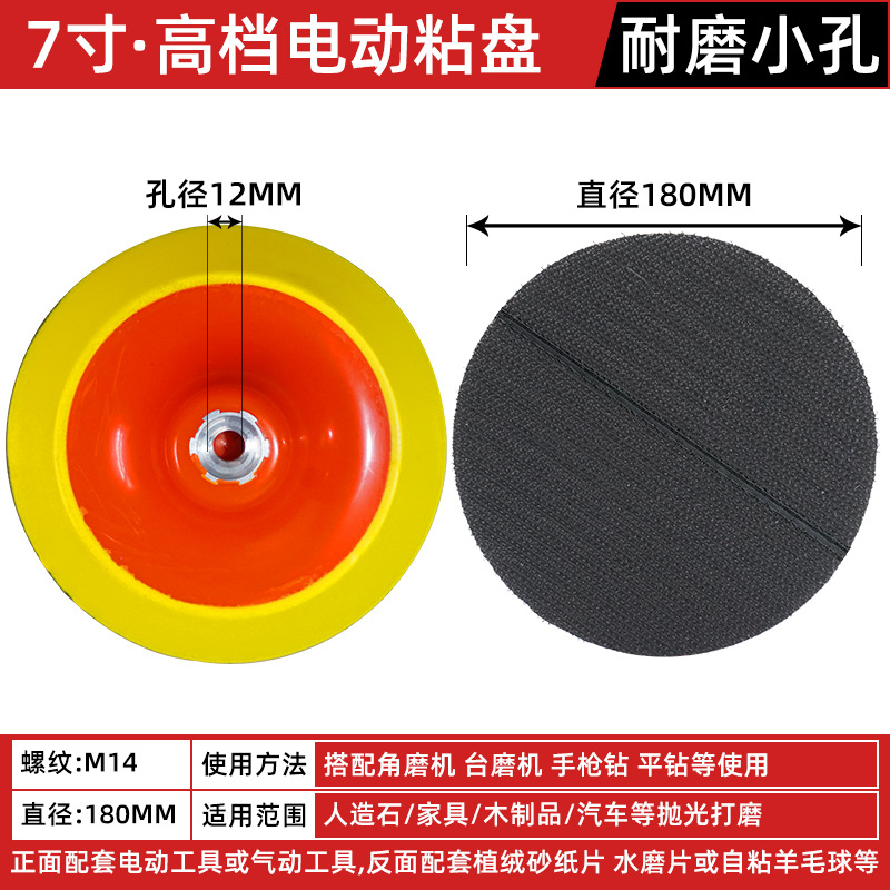 自粘盘和打磨机配套使用,正面有螺纹可以拧上打磨机,反面可粘上植绒砂纸片、水磨片或自粘羊毛球,广泛用于人造石、家具及木制品、金属、汽车等物品的打磨和抛光!电动吸盘详情_01