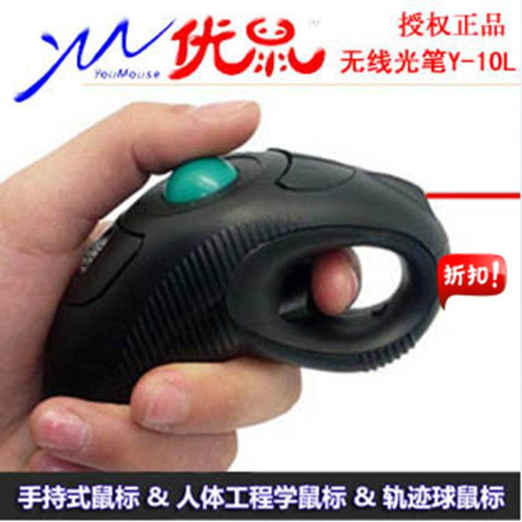 已申请专利的手握式无线鼠标带红外线激光教鞭,符合人体工学设计,手感舒适,无需桌面支撑,握于手中滚动轨迹球移动光标,左右手通用,习惯使用左手之人的不二选择性。