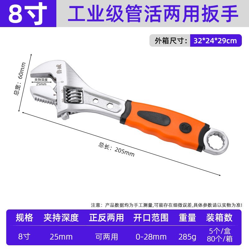 • 둥근 구멍 8inch 조정 가능한 입 렌치(상자에 6개, 상자에 120개), 0.30kg