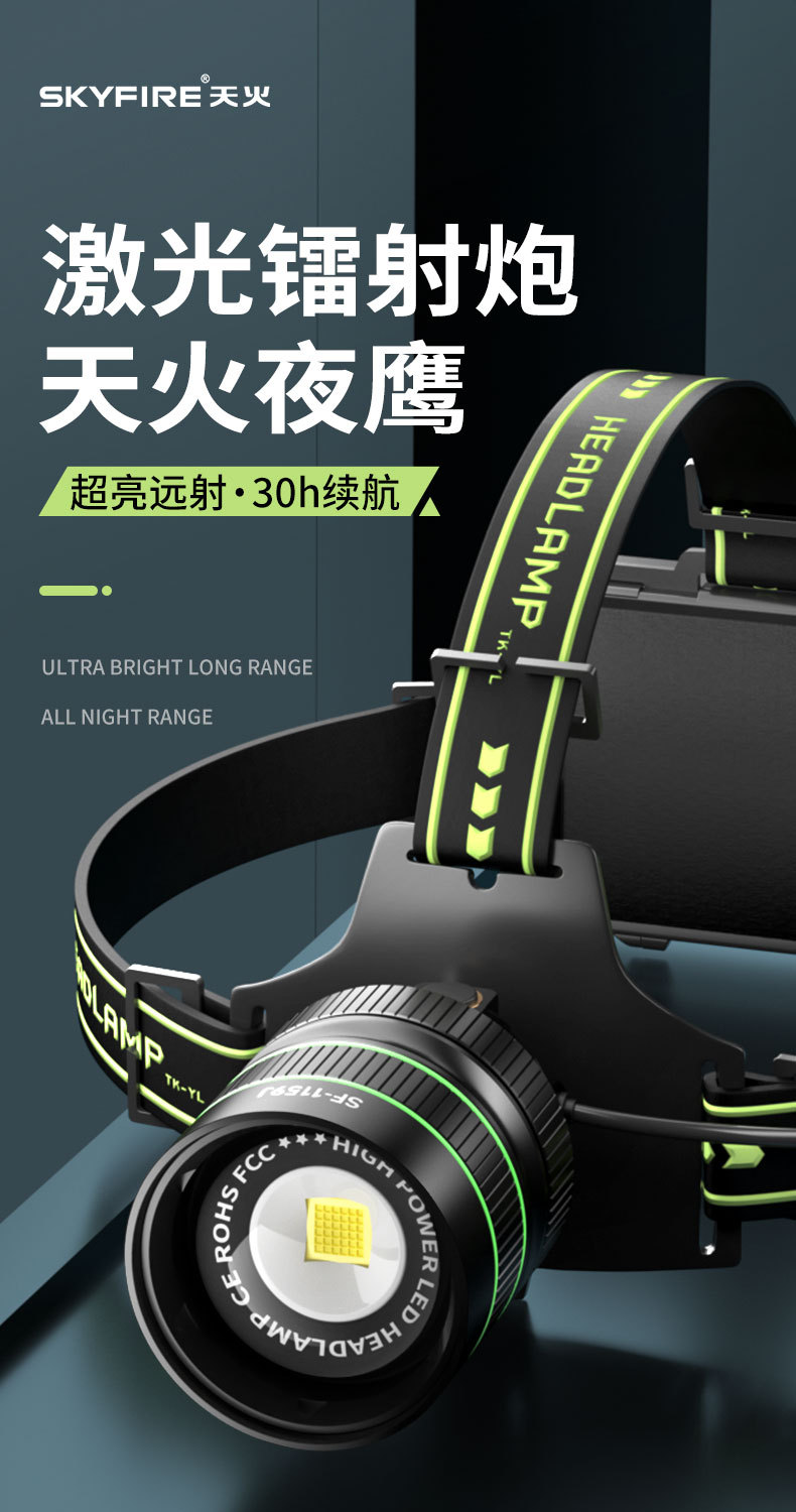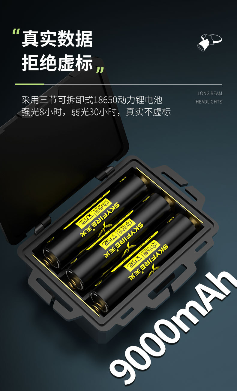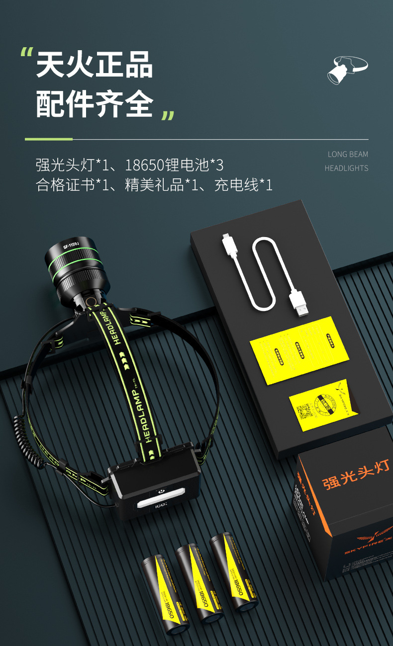 스카이 파이어 야간 낚시 용 특수 헤드 램프 강력한 조명 충전 슈퍼 브라이트 헤드 마운트 유도 손전등 초장기 내구성 야외 광부 램프