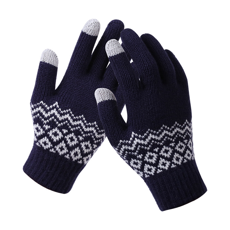대외 무역 따뜻하고 내한성 두꺼운 성인 자카드 장갑 제조 업체 여성 겨울 니트 터치 스크린 장갑 국경 도매스토어 가기