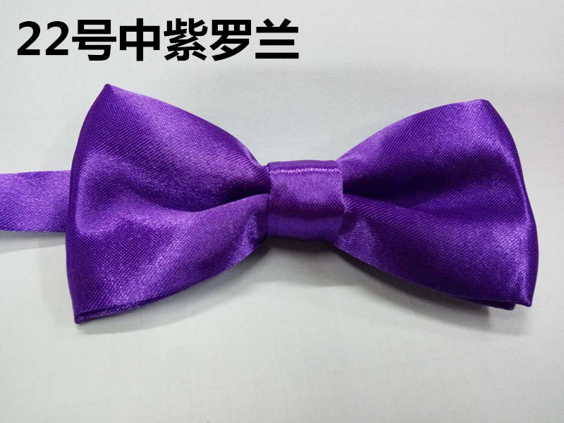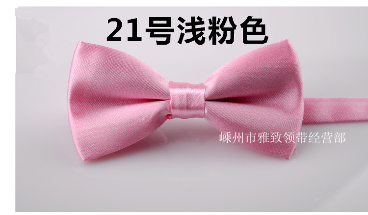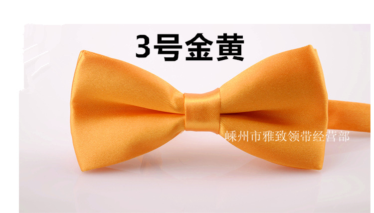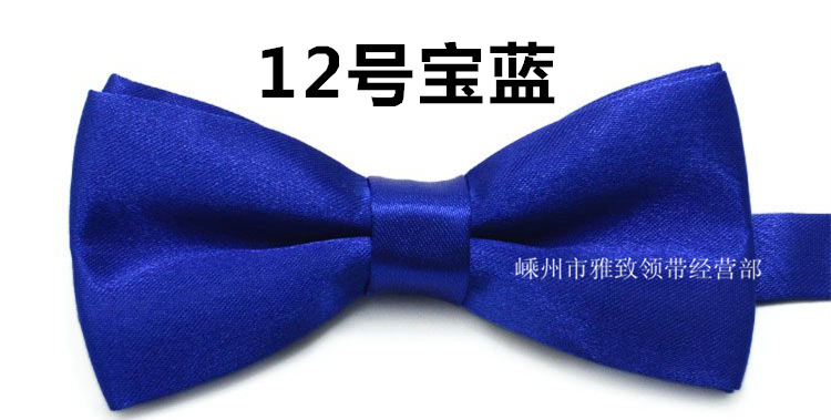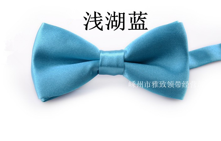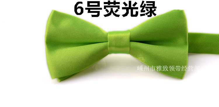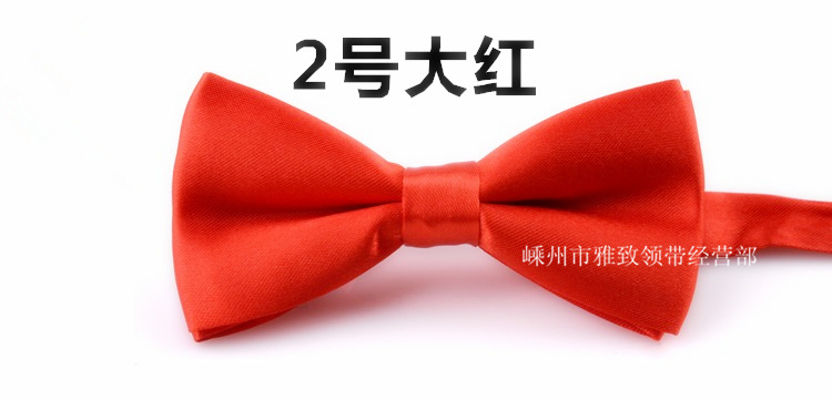 此款为糖果色光面儿童领结,有多种颜色可选,尺寸为5*10cm。