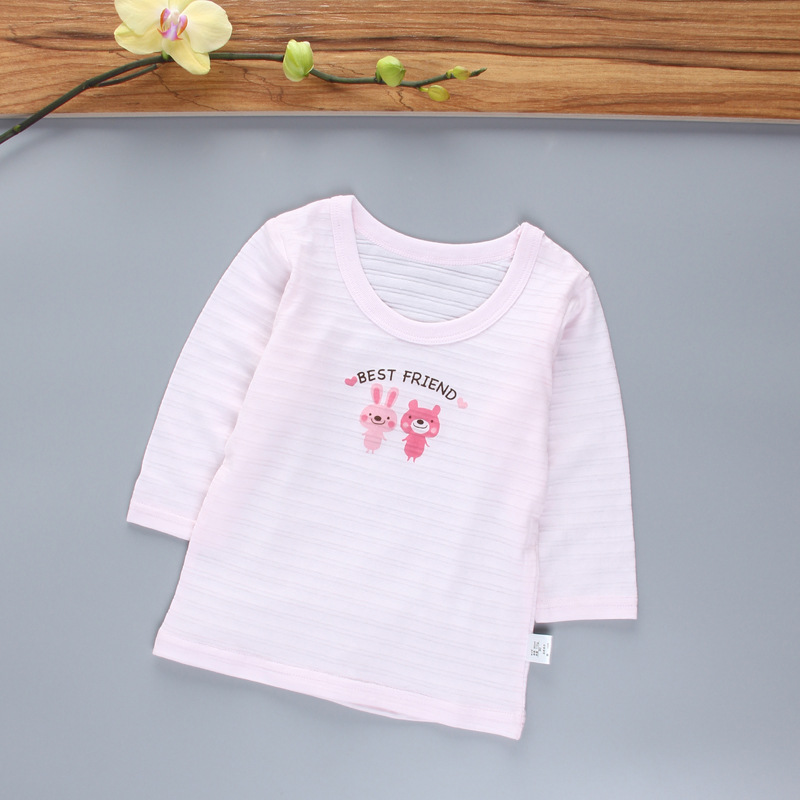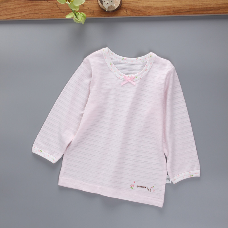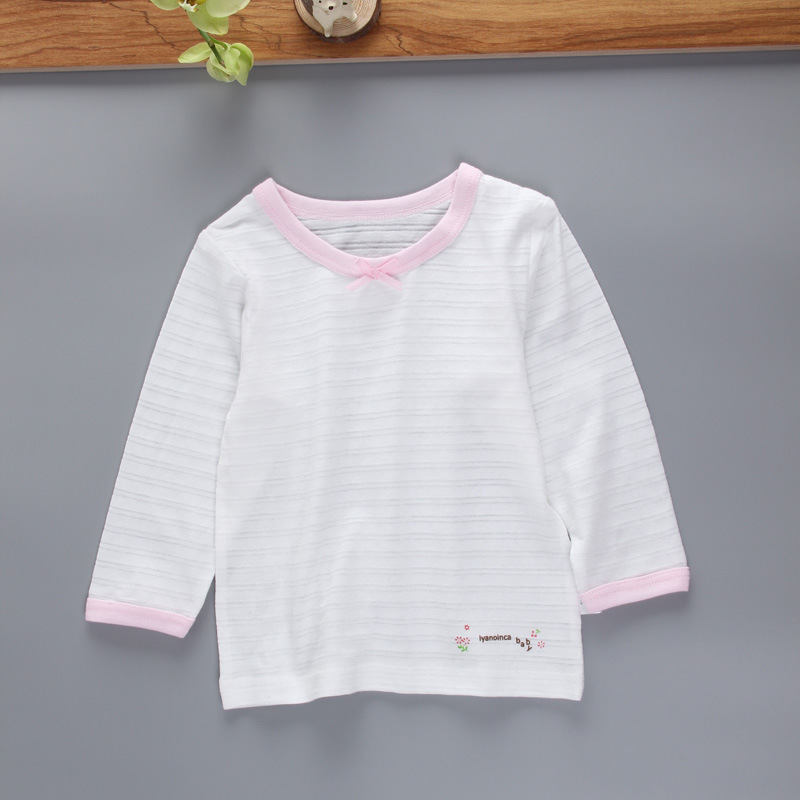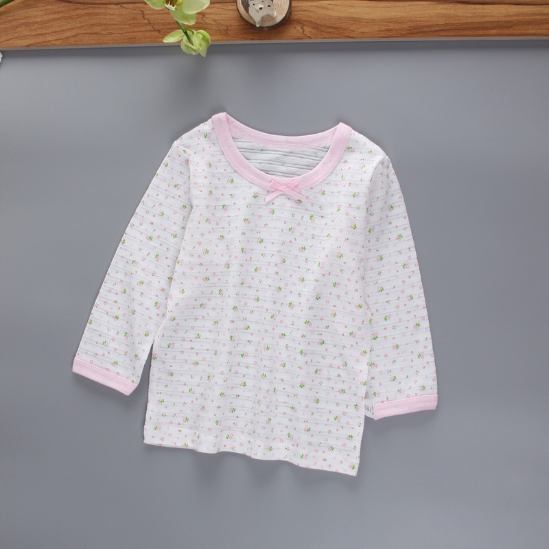 아동복 가을 새 여성 슬러브 면베이스 셔츠 어린이 무형광 긴팔 티셔츠 프린트 탑 에어컨 셔츠