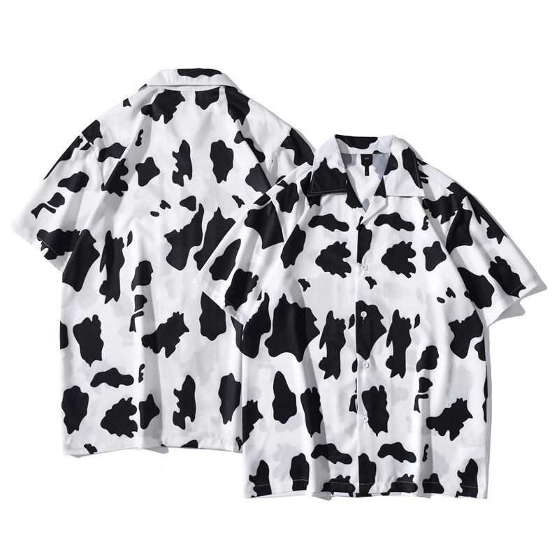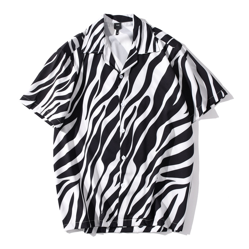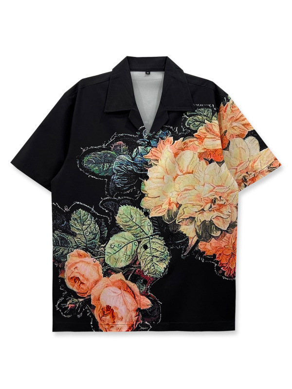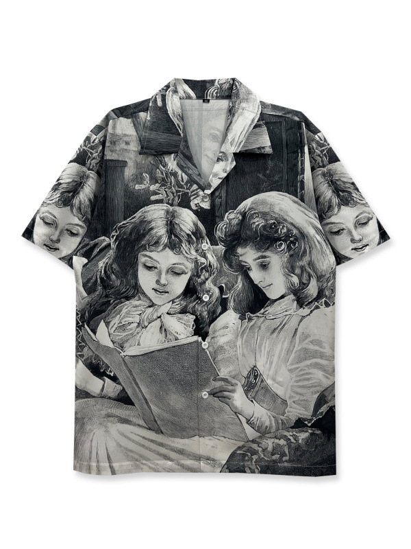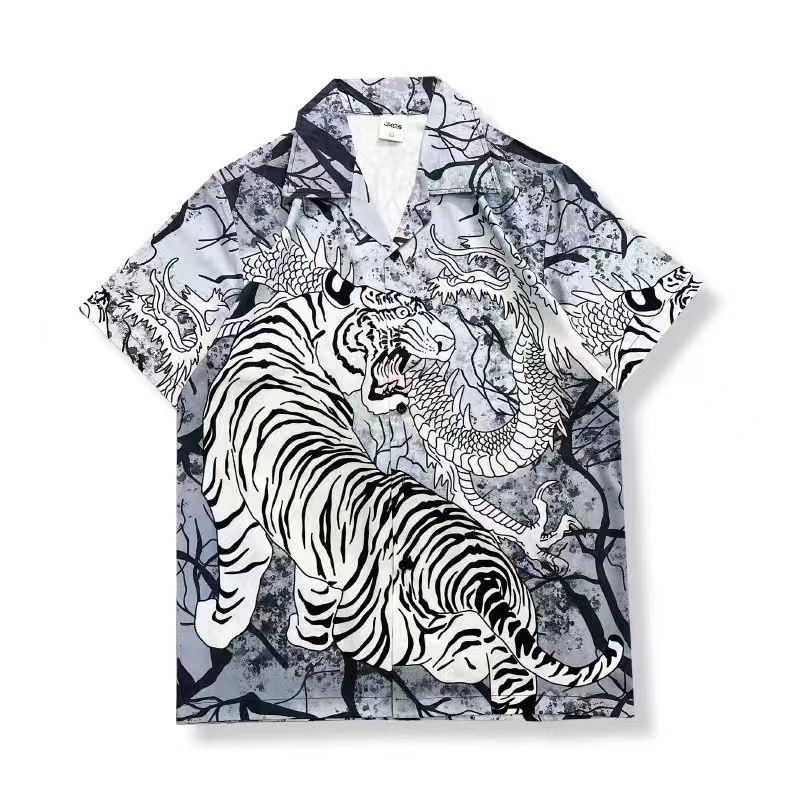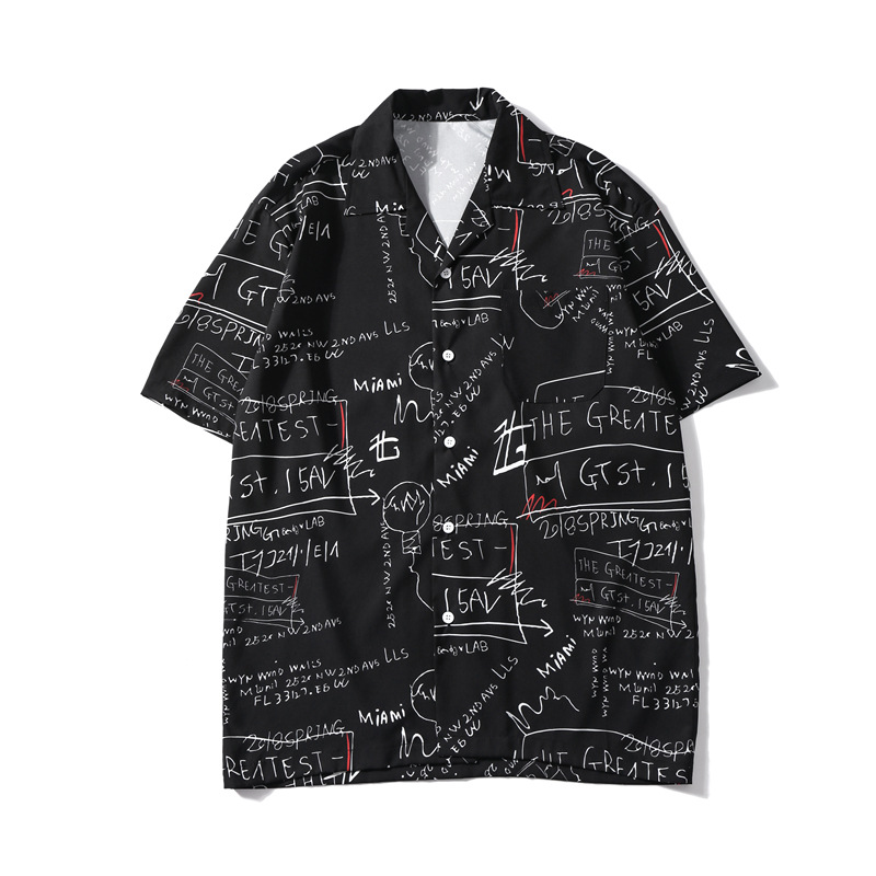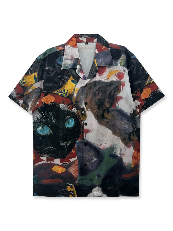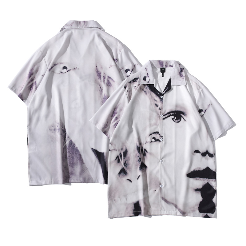 빈티지 레트로 디지털 프린트 셔츠 커플 반팔 얇은 루즈핏 캐주얼 비치 셔츠 남성용